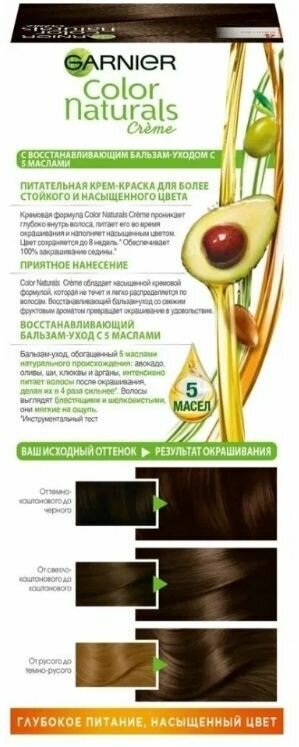 GARNIER Color Naturals стойкая питательная крем-краска для волос 3 Темный каштан 110 мл - 3 шт