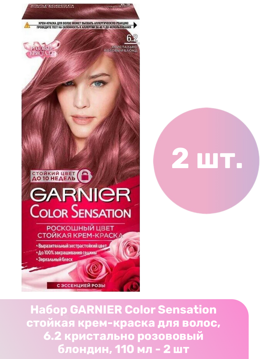 Купить GARNIER Color Sensation стойкая крем-краска для волос, 6.2 кристально розововый блондин, 110 мл - 2 шт