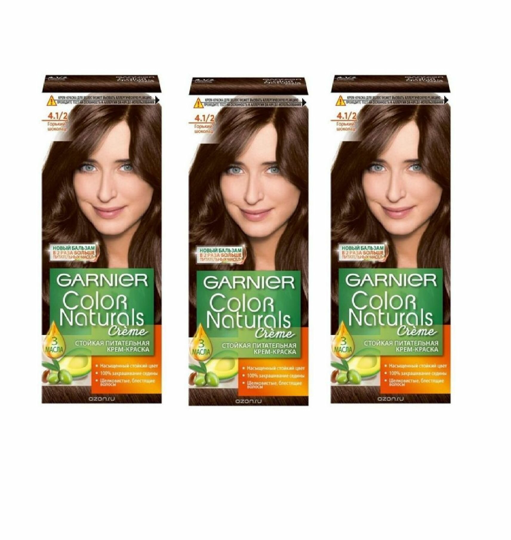 Купить GARNIER Color Naturals стойкая питательная крем-краска для волос, 4.1/2, Горький Шоколад, 110 мл - 3 шт