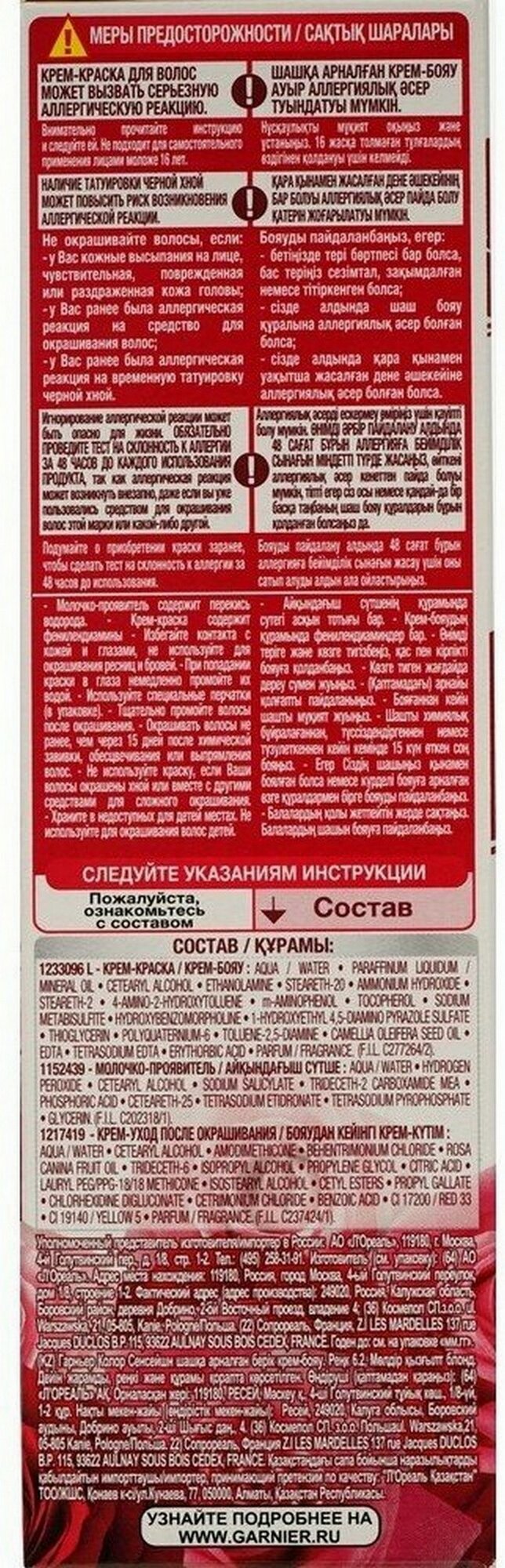 Купить GARNIER Color Sensation стойкая крем-краска для волос, 6.2 кристально розововый блондин, 110 мл - 3 шт