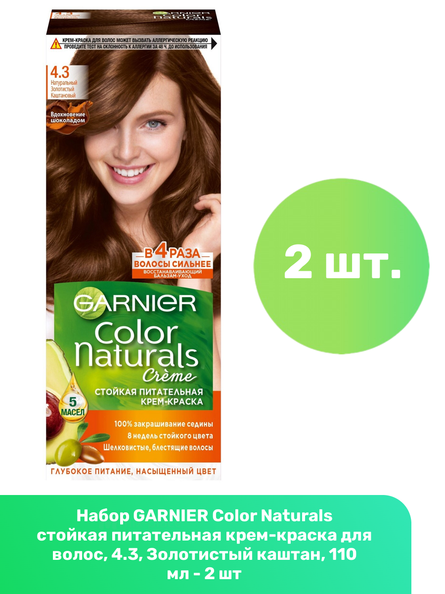 GARNIER Color Naturals Краска для волос 110мл 4.3 Золотой каштан, набор 3шт