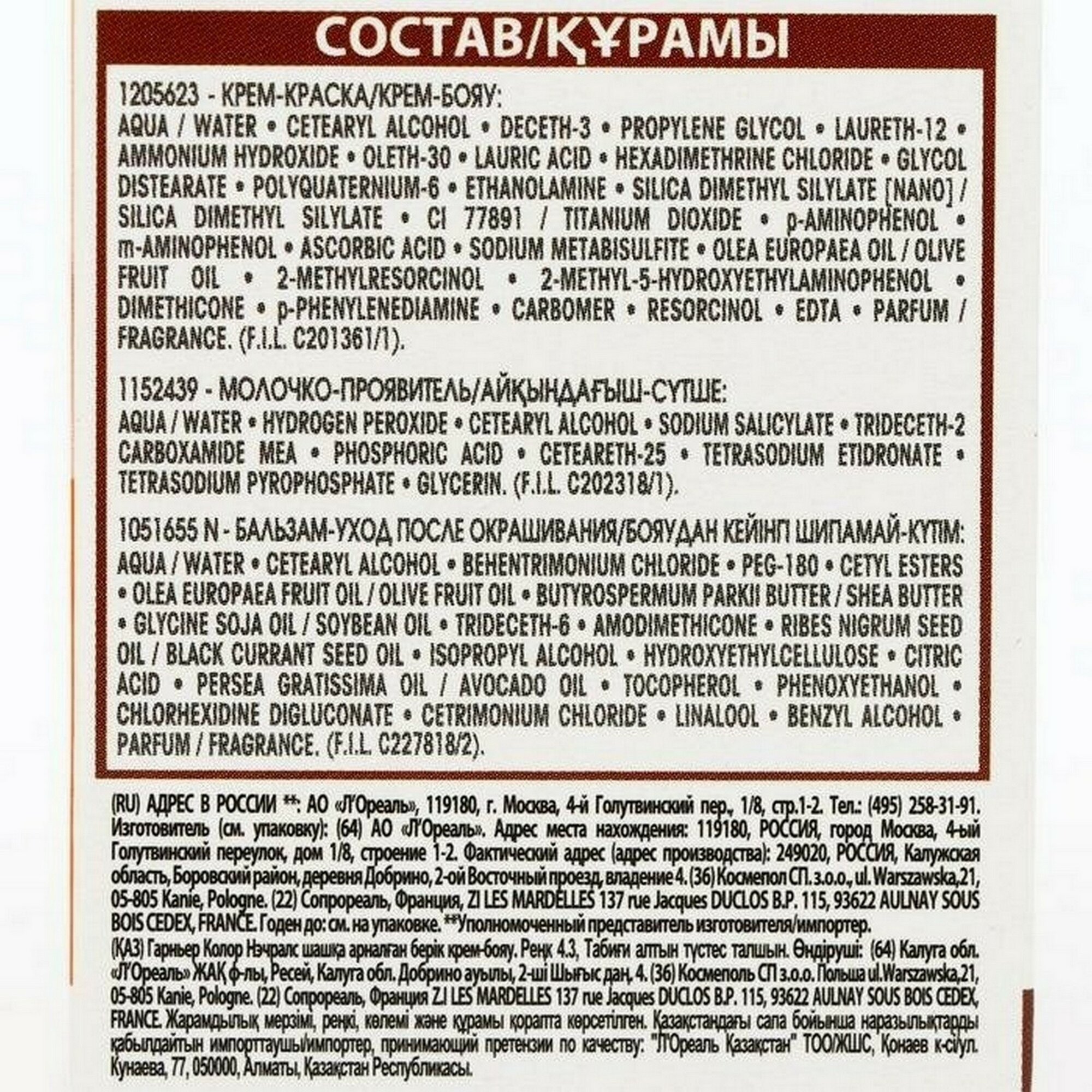 | Дополнительная информация | окислитель - 60 мл, краситель - 40 мл, крем-уод - 10 мл |