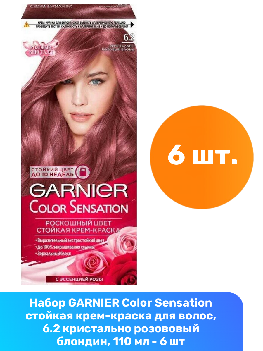 Купить GARNIER Color Sensation стойкая крем-краска для волос, 6.2 кристально розововый блондин, 110 мл - 6 шт