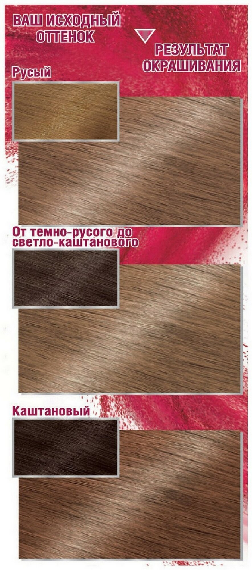| Способ применения | мешайте крем-краску и молочко-проявитель. Нанесите на волосы. Подождите рекомендованное на упаковке время и смойте. Нанесите бальзам. Смойте. Для усиления защиты цвета от вымывания используйте шампунь для окрашенных волос |
