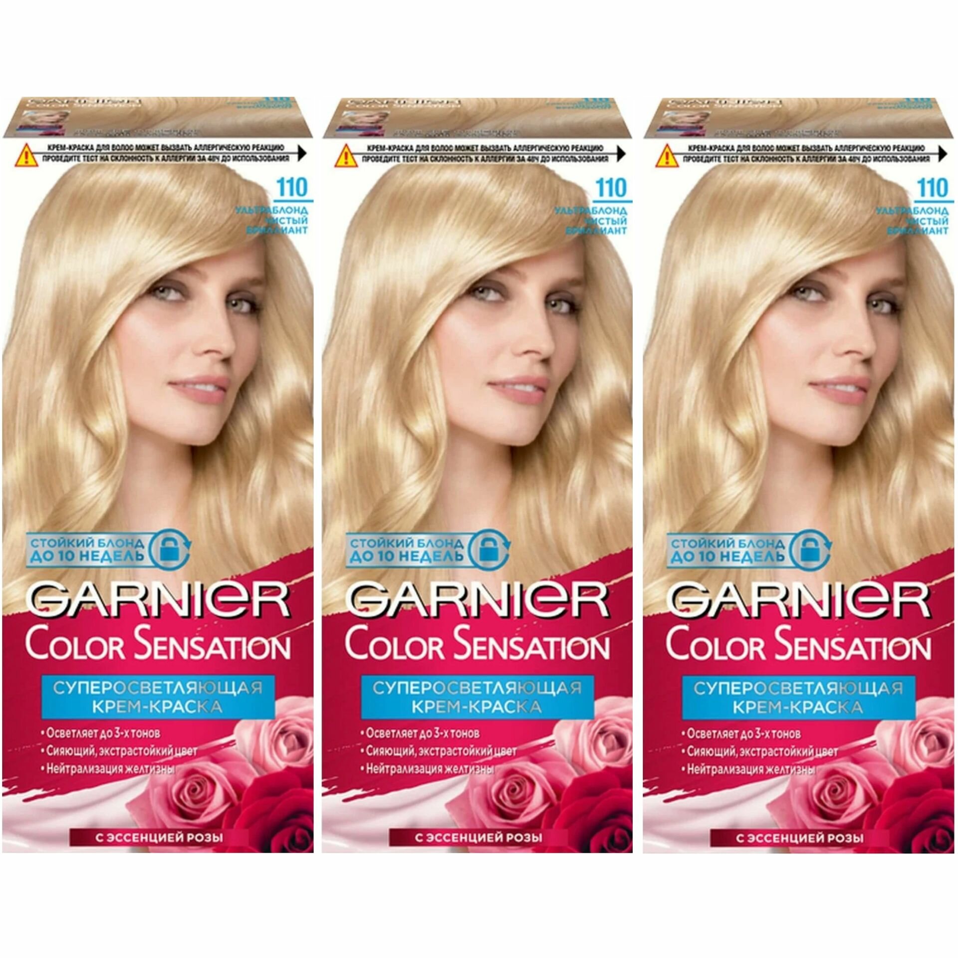 Набор из 3 штук Краска для волос Garnier Color Sensation оттенок 110, Ультра Блонд чистый брилиант, 110мл