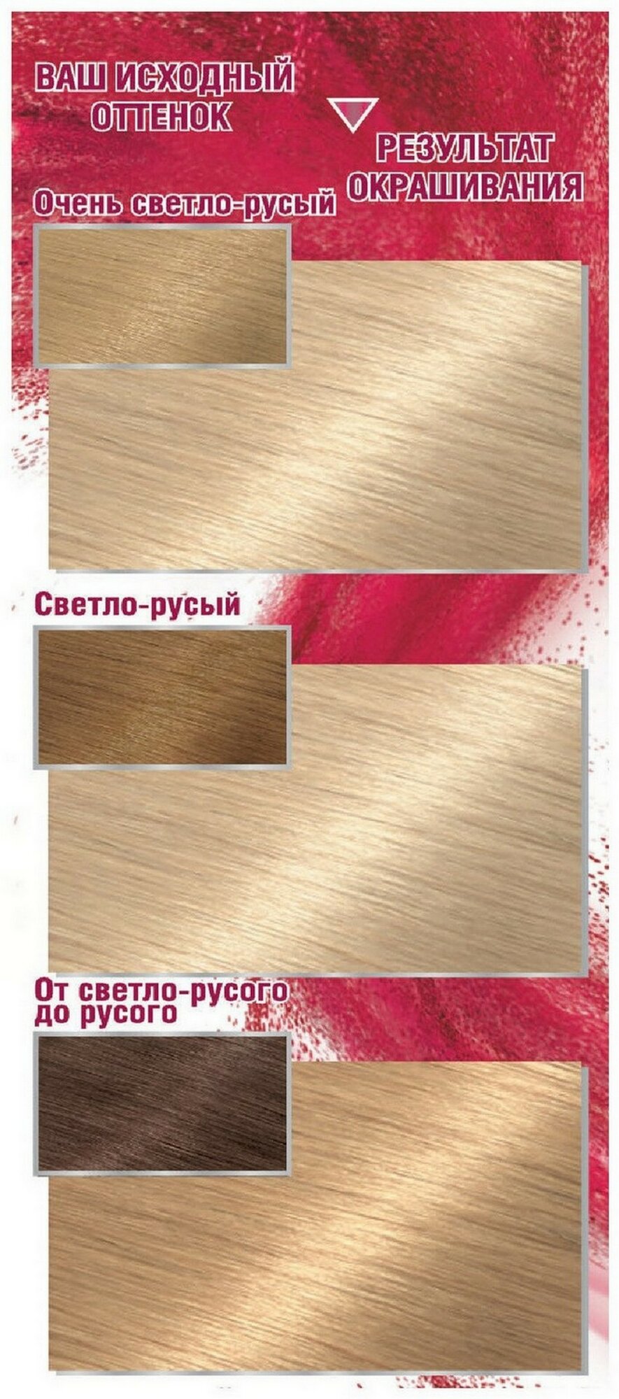 | Способ применения | мешайте крем-краску и молочко-проявитель. Нанесите на волосы. Подождите рекомендованное на упаковке время и смойте. Нанесите бальзам. Смойте. Для усиления защиты цвета от вымывания используйте шампунь для окрашенных волос |