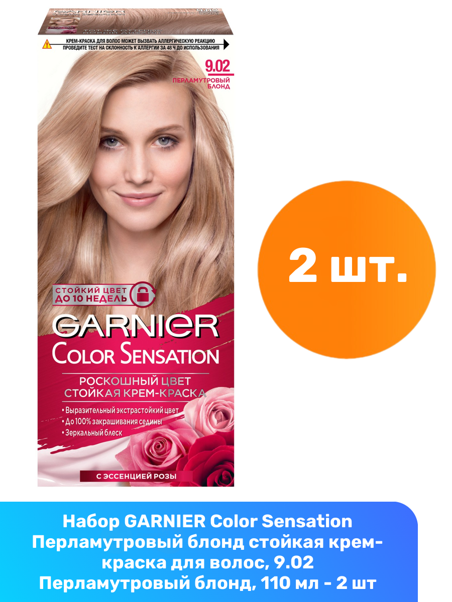 Купить GARNIER Color Sensation Перламутровый блонд стойкая крем-краска для волос, 9.02 Перламутровый блонд, 110 мл - 2 шт
