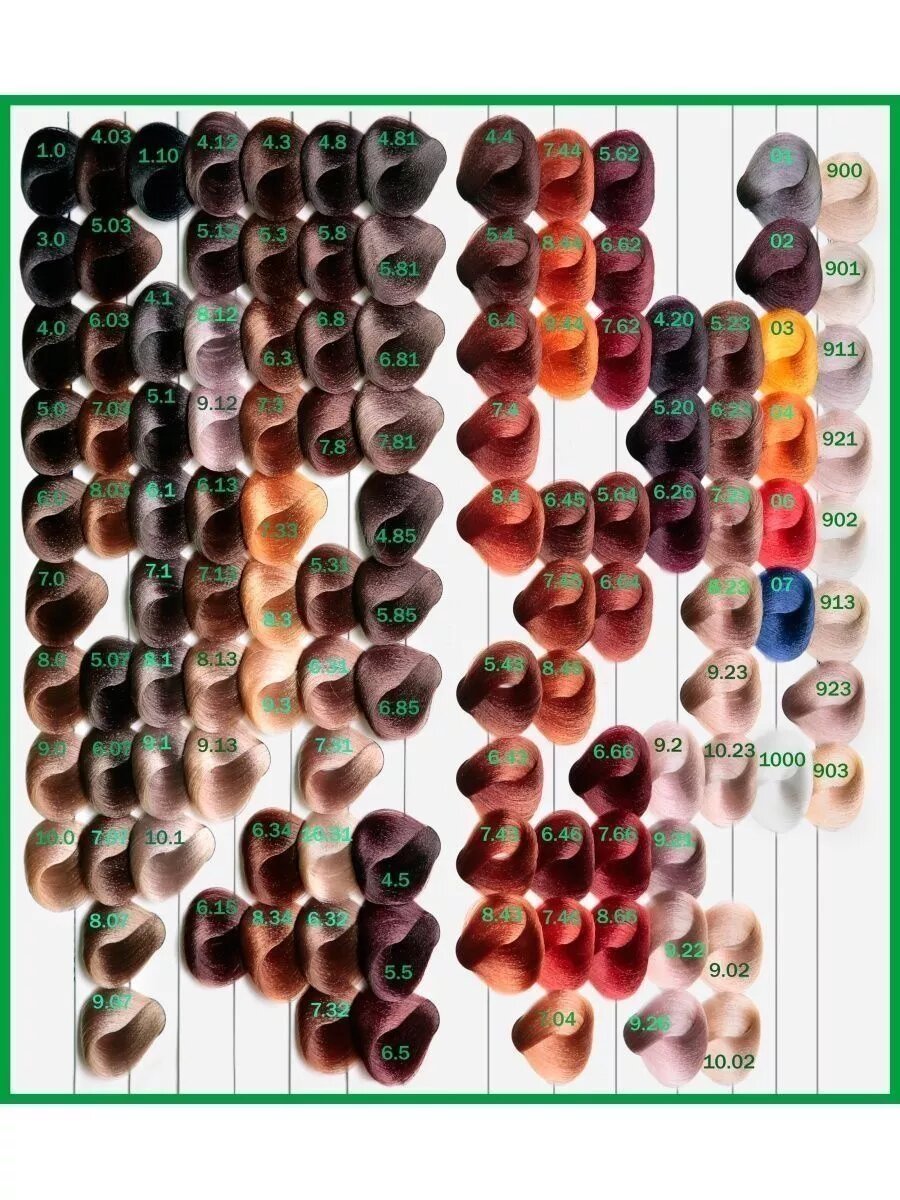 | Дополнительная информация | необходима предварительная диагностика перед окрашиванием; в первую очередь необходимо определить уровень глубины цвета натуральных волос и процент седины; для определения цвета волос использовать шкалу натуральных оттенков палитры; важно: в случае не точной диагностики и определения исходного цвета волос, цвет волос после окрашивания может не совпадать с выбранным из палитры на 100% |