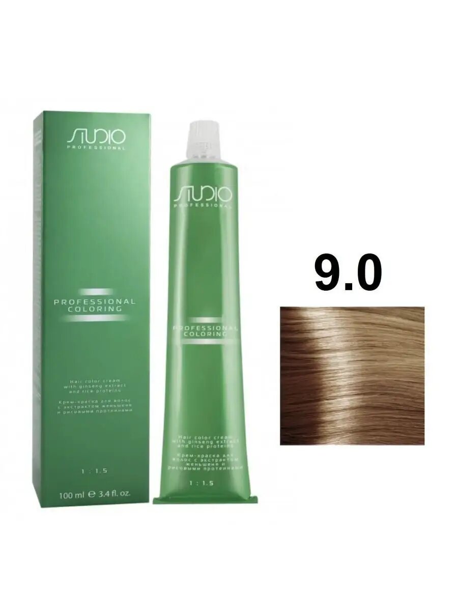 Kapous Studio Professional Крем-краска для волос Studio, тон №9.0, Очень светлый блонд, с рисовыми протеинами и экстрактом женьшеня, 100 мл