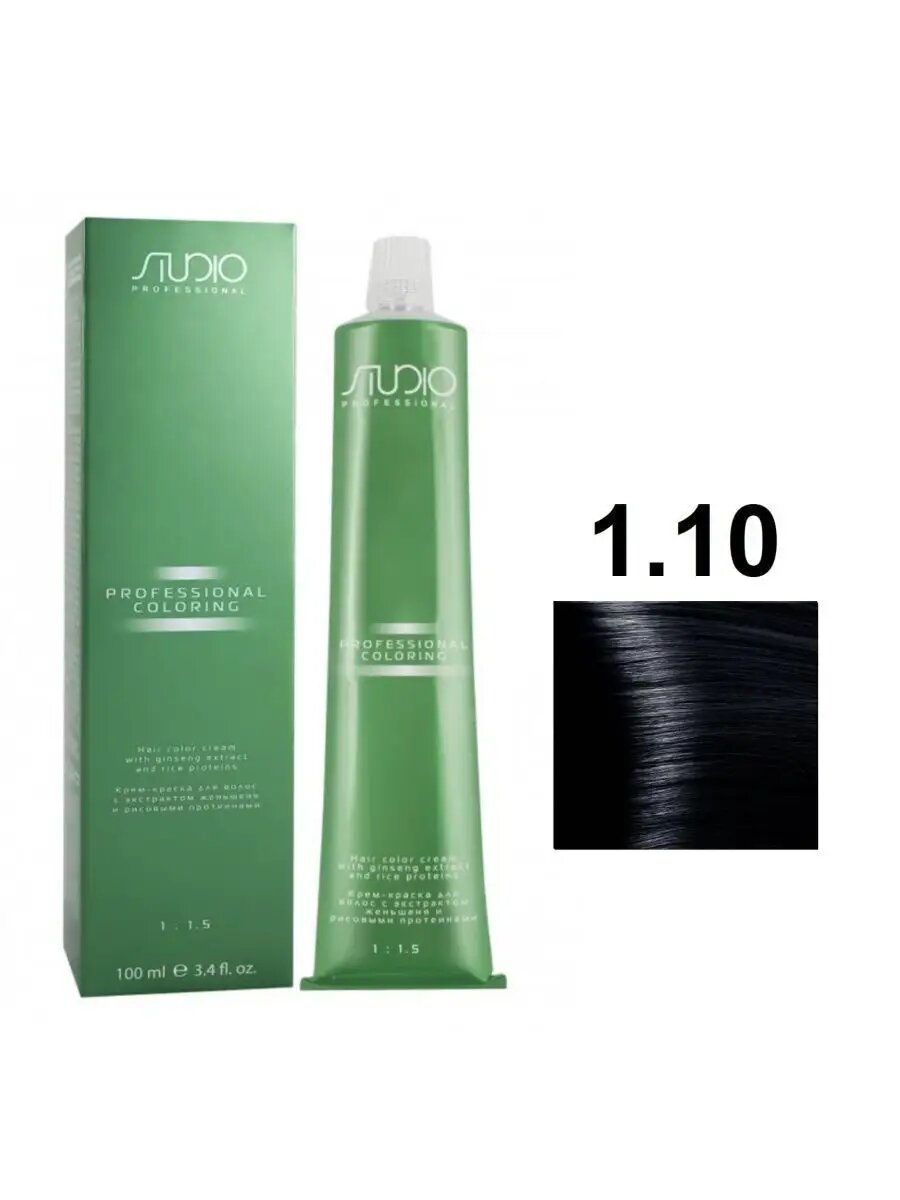 Kapous Studio Professional Крем-краска для волос Studio, тон №1.10, Иссиня-черный, с рисовыми протеинами и экстрактом женьшеня, 100 мл