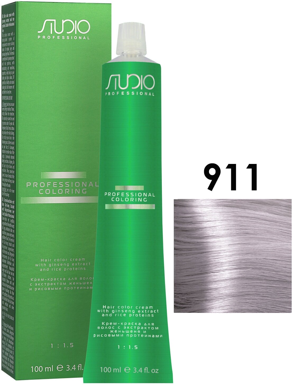 Kapous Studio Professional Крем-краска для волос Studio, тон №911, с рисовыми протеинами и экстрактом женьшеня, Ультра-светлый серебристо-пепельный бл