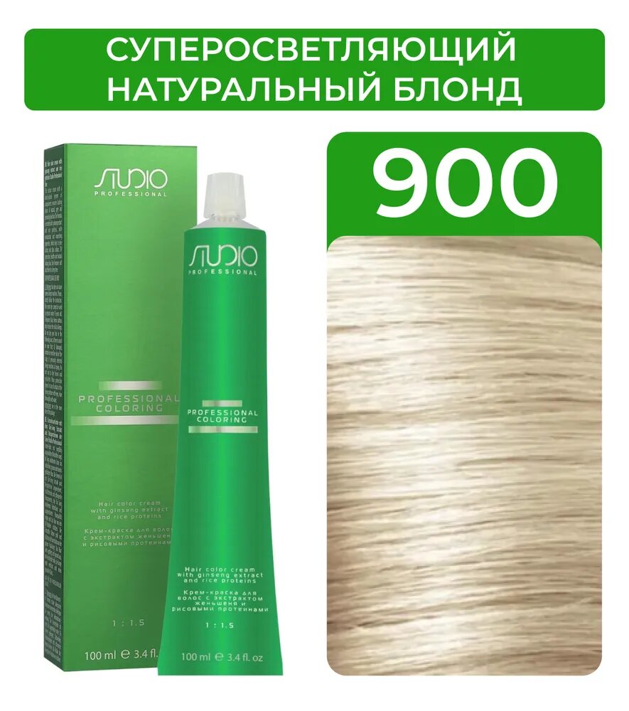 Kapous Studio Professional Крем-краска для волос Studio, тон №9.0, Очень светлый блонд, с рисовыми протеинами и экстрактом женьшеня, 100 мл