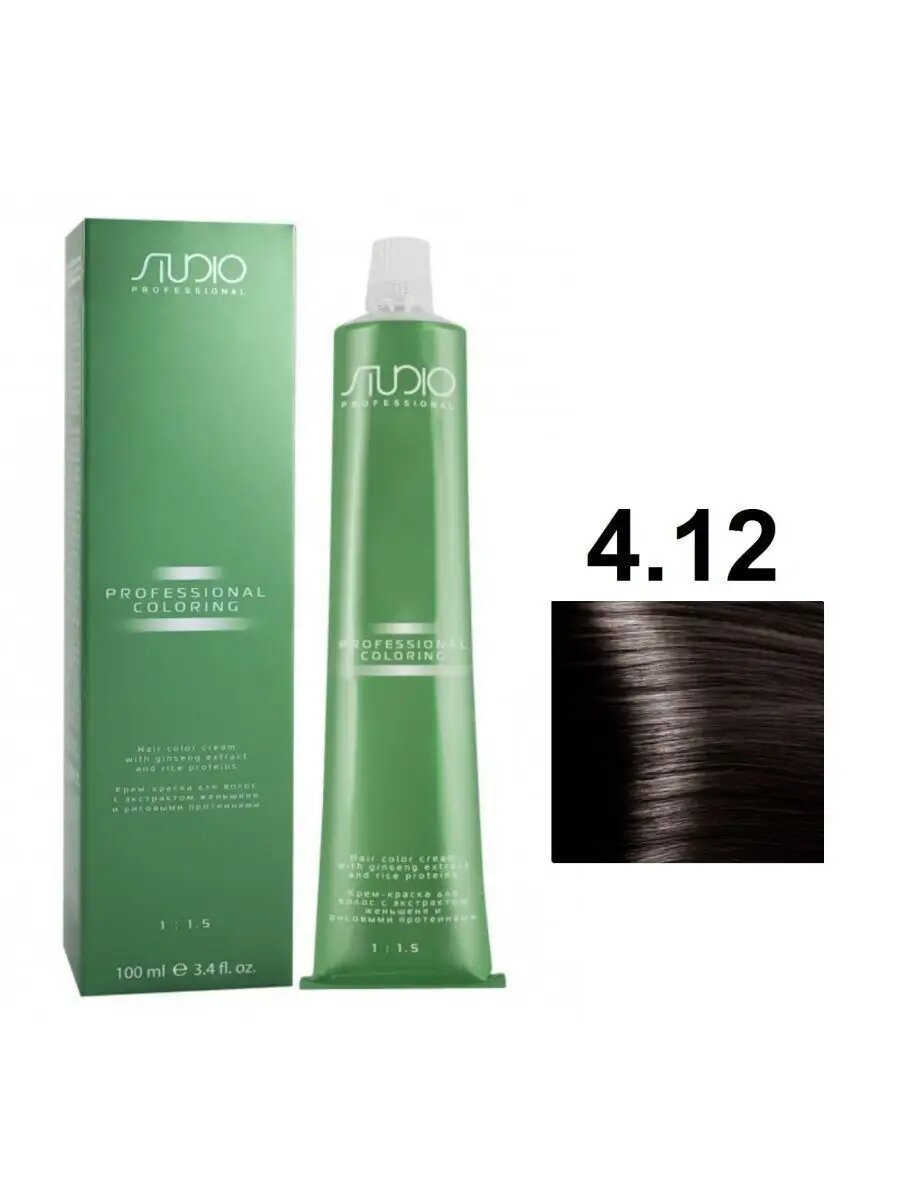 Крем-краска для волос с экстрактом женьшеня и рисовыми протеинами Kapous Studio Professional, 4.12 коричневый пепельно-перламутровый, 100 мл