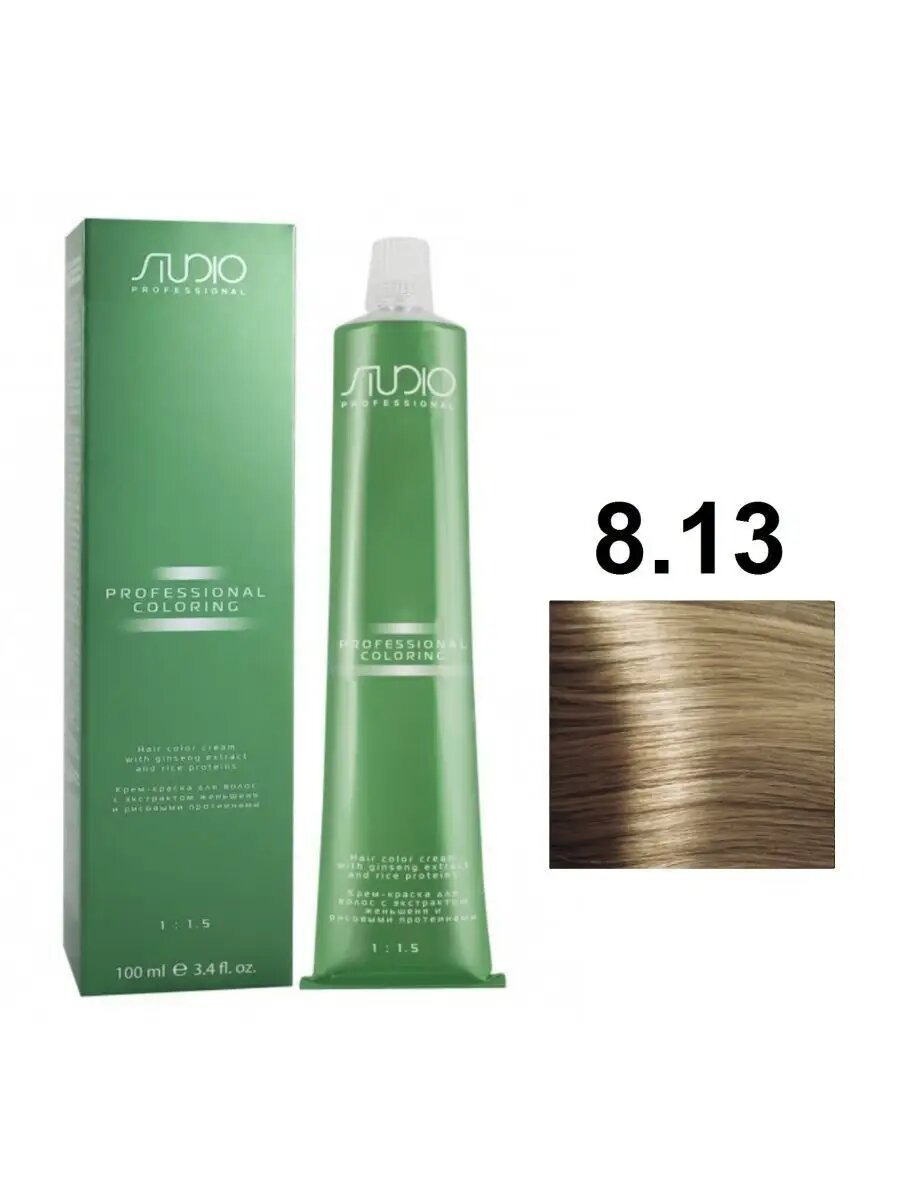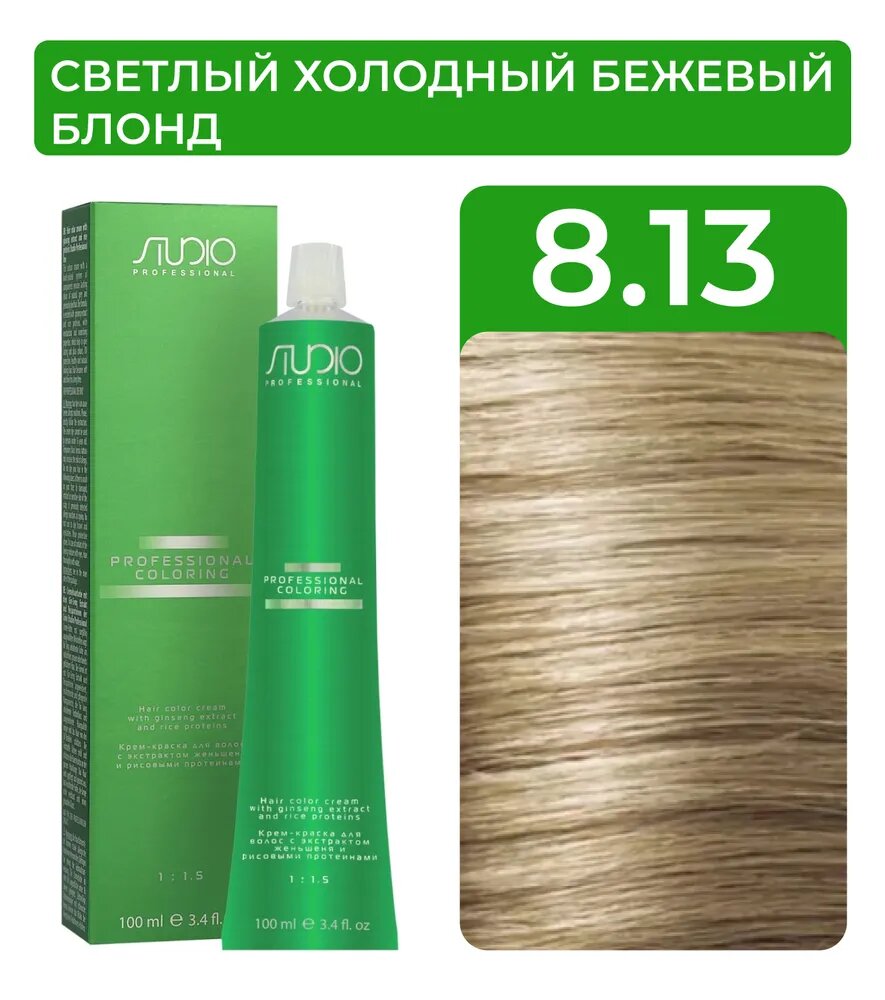Kapous Studio Professional Крем-краска для волос Studio, тон №8.13, Светлый холодный бежевый блонд, с рисовыми протеинами и экстрактом женьшеня, 100 м