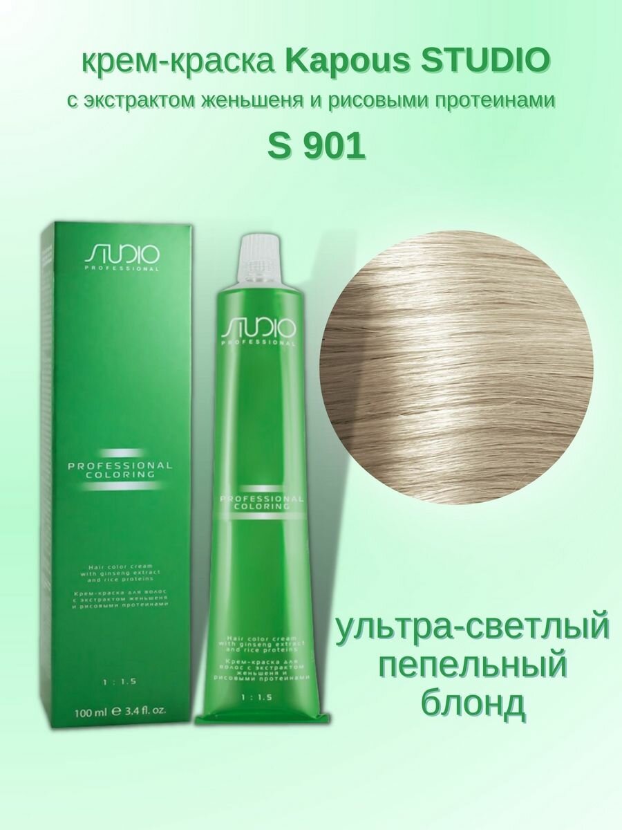 Купить Kapous Studio Professional 901 S суперосветляющий пепельный блонд, крем-краска c экстрактом женьшеня и рисовыми протеинами, 100 мл