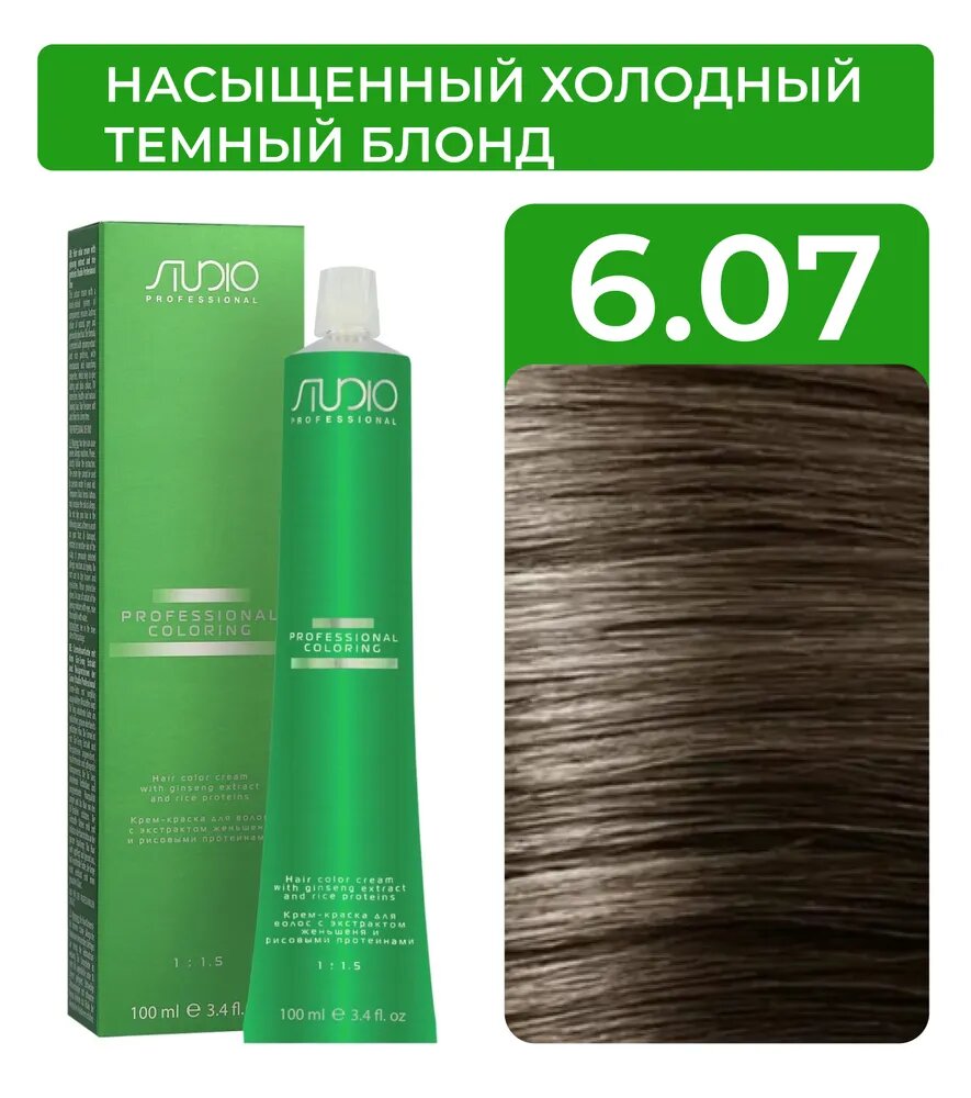 Kapous Studio Professional Крем-краска для волос Studio, тон №6.07, Насыщенный холодный темный блонд, с рисовыми протеинами и экстрактом женьшеня, 100