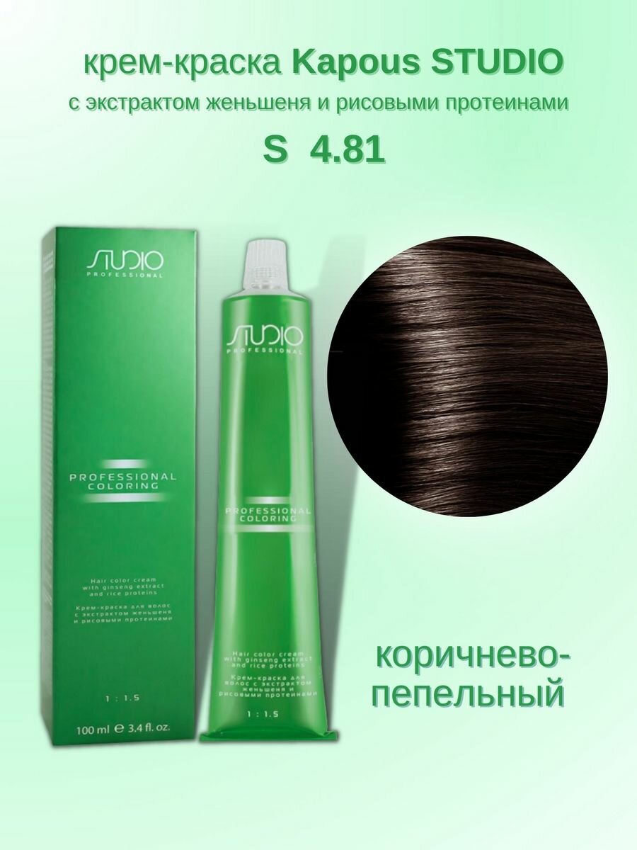 Kapous Studio Professional Крем-краска для волос Studio, тон №4.81, Коричнево-пепельный, с рисовыми протеинами и экстрактом женьшеня, 100 мл