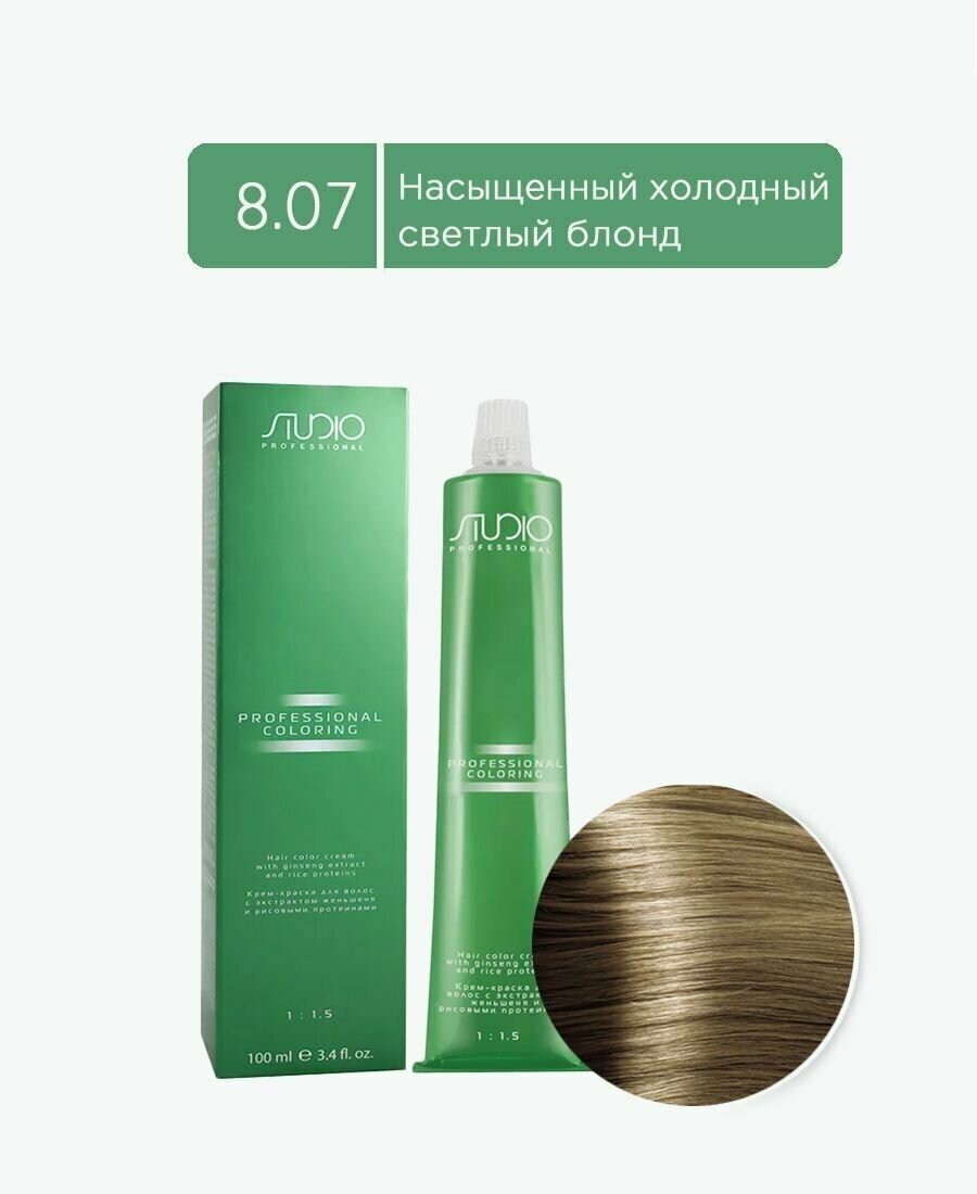 Kapous Professional Studio Крем-краска для волос S 9.07 насыщенный холодный очень светлый блонд с экстрактом женьшеня и рисовыми протеинами, 100 мл
