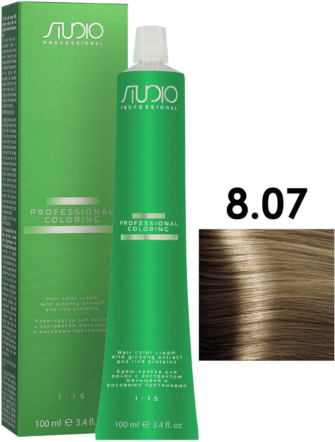 Kapous Studio Professional Крем-краска для волос Studio, тон №6.07, Насыщенный холодный темный блонд, с рисовыми протеинами и экстрактом женьшеня, 100