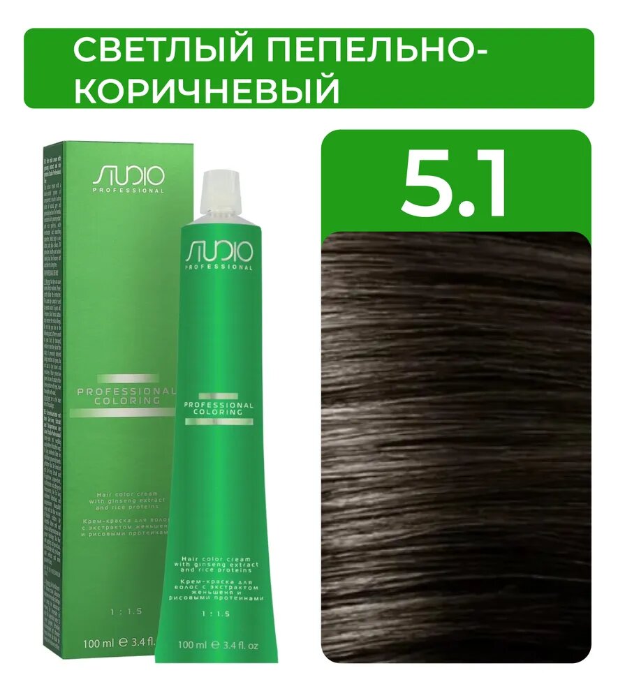 Kapous Studio Professional Крем-краска для волос Studio, тон №5.1, Светлый пепельно-коричневый, с рисовыми протеинами и экстрактом женьшеня, 100 мл