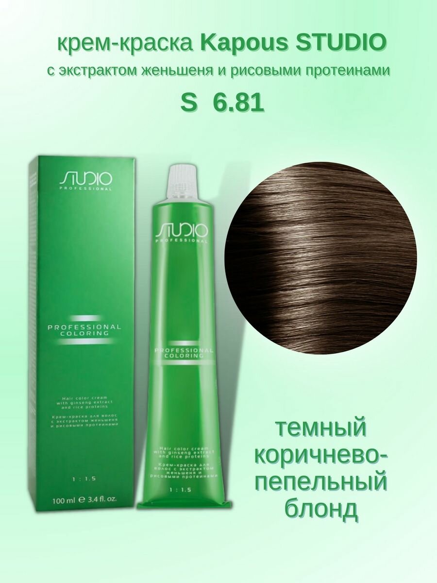 Купить Kapous Studio Professional Крем-краска для волос Studio, с рисовыми протеинами и экстрактом женьшеня, тон №6.81, Темный коричнево-пепельный блонд, 100