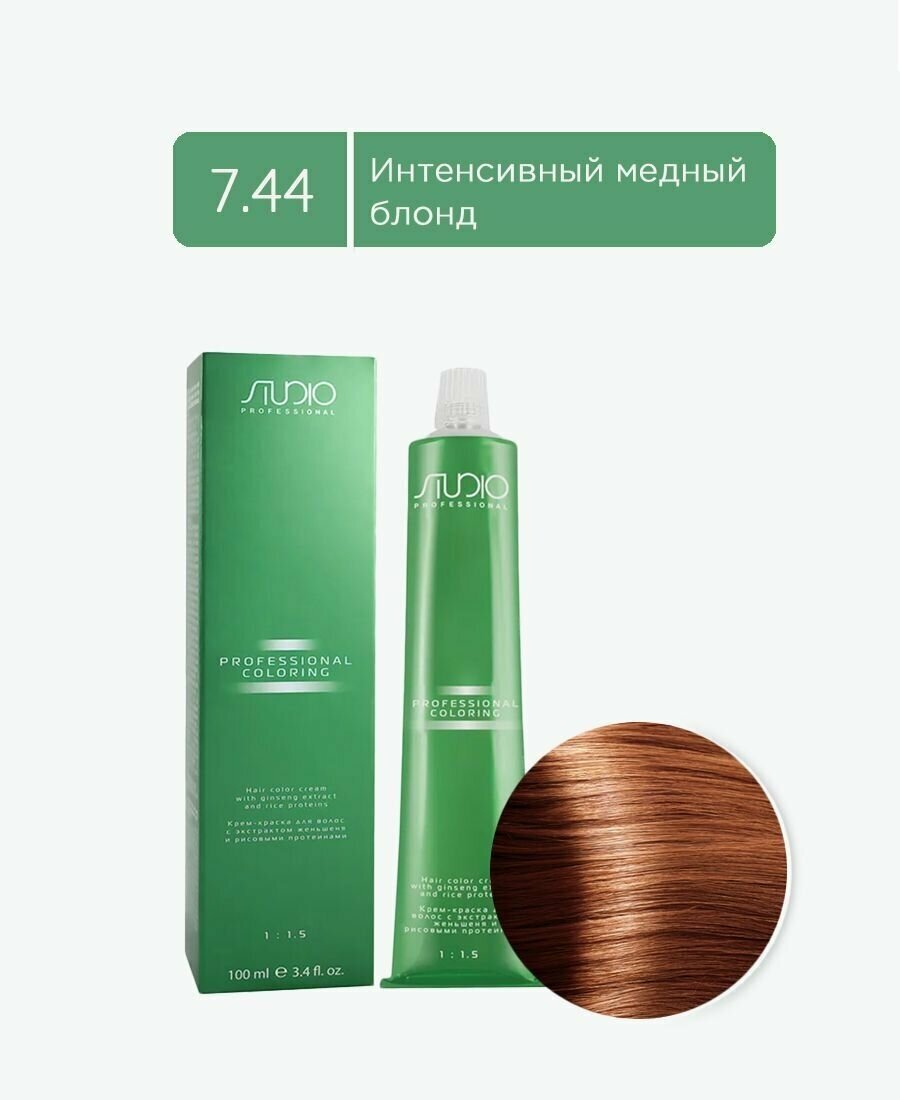 Крем-краска для волос с экстрактом женьшеня и рисовыми протеинами Kapous Studio Professional, 7.4 медный блонд, 100 мл