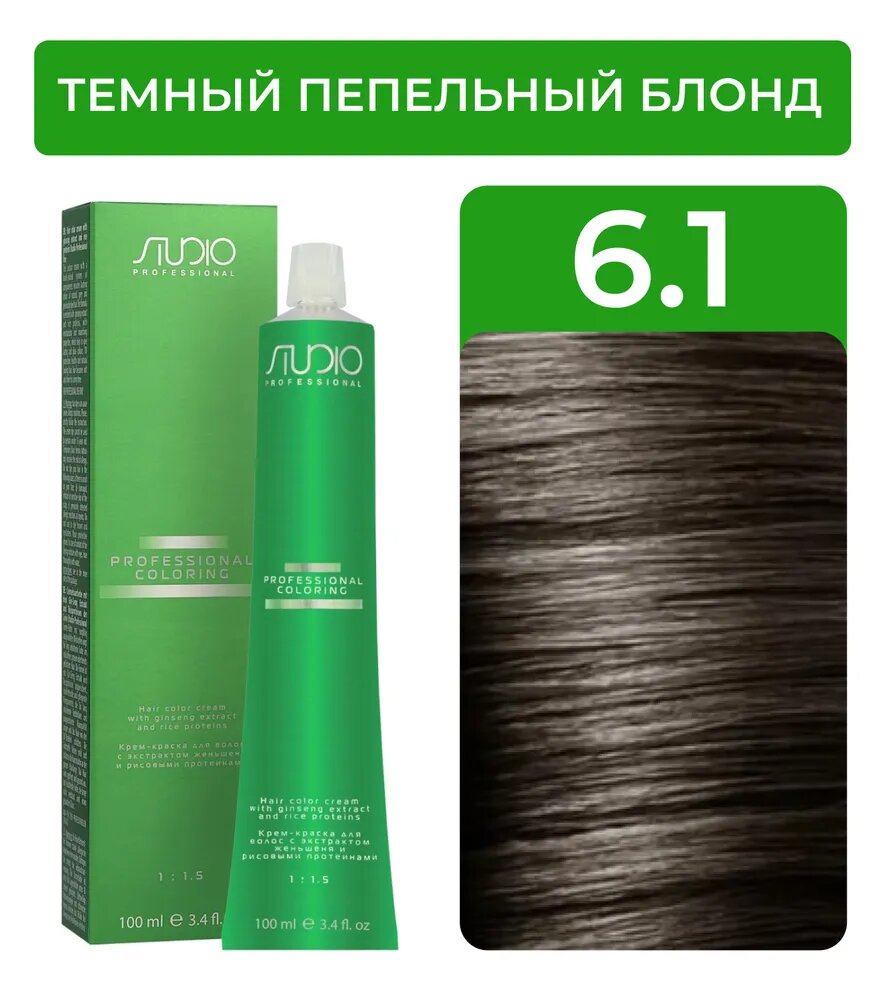 Купить Kapous Studio Professional Крем-краска для волос с экстрактом женьшеня и рисовыми протеинами, 6.1 темный пепельный блонд, 100 мл