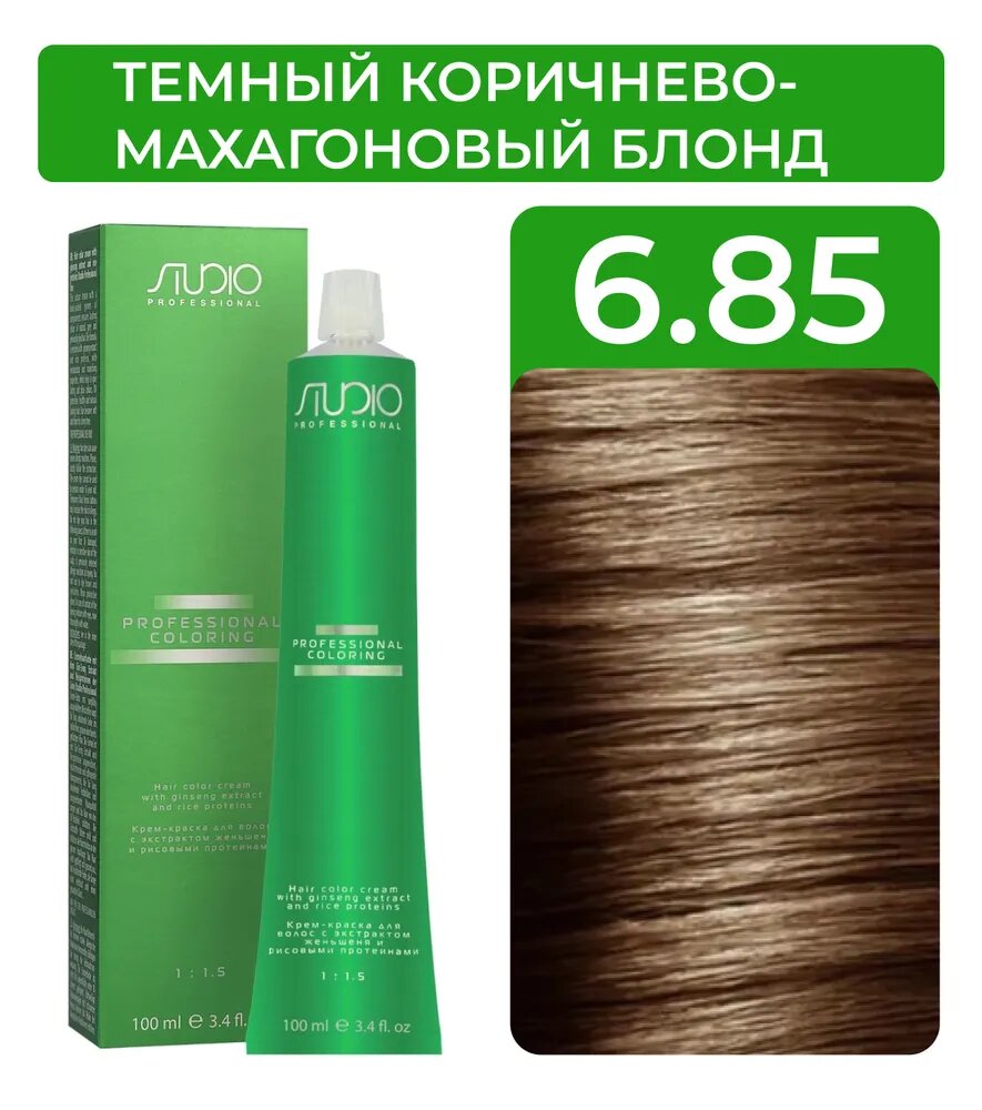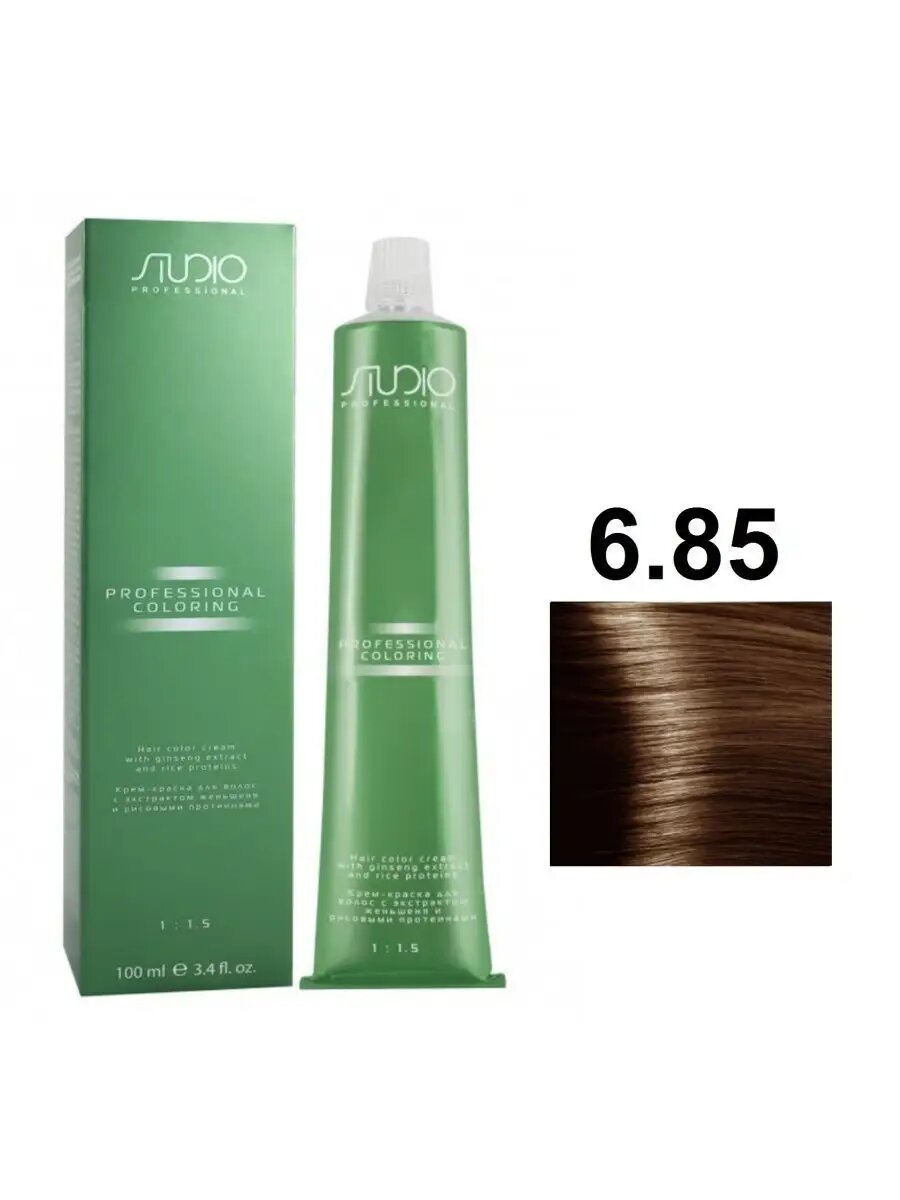 Kapous Studio Professional Крем-краска для волос Studio, тон №6.85, Темный коричнево-махагоновый блонд, с рисовыми протеинами и экстрактом женьшеня, 1