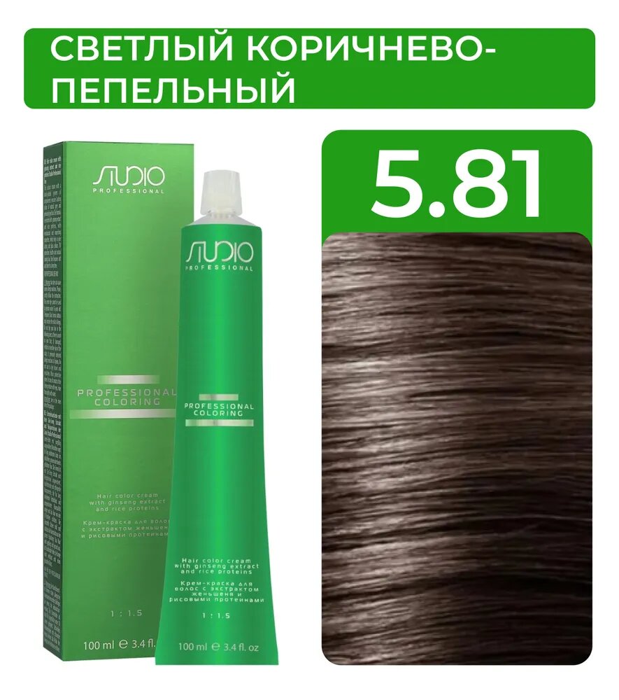 Kapous Studio Professional Крем-краска для волос Studio, тон №5.81, Светлый коричнево-пепельный, с рисовыми протеинами и экстрактом женьшеня, 100 мл