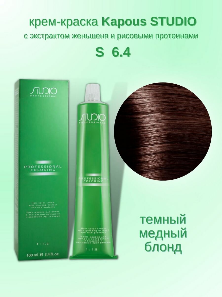 Kapous Studio Professional Крем-краска для волос Studio, тон №6.4, Тёмный медный блонд, с рисовыми протеинами и экстрактом женьшеня, 100 мл