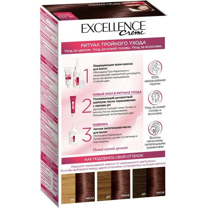 L'Oreal Paris Excellence стойкая крем-краска для волос, 4.02 Пленительный каштан - 3 шт