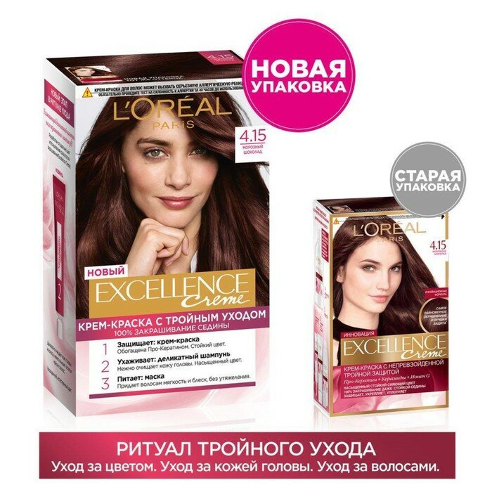 Ниже Вы можете прочитать отзывы на L'Oreal Paris Excellence стойкая крем-краска для волос, 4.15 Морозный шоколад - 1 шт, ознакомится с подробными характеристиками, посмотреть интересные обзоры и фотографии на L'Oreal Paris Excellence стойкая крем-краска для волос, 4.15 Морозный шоколад - 1 шт.