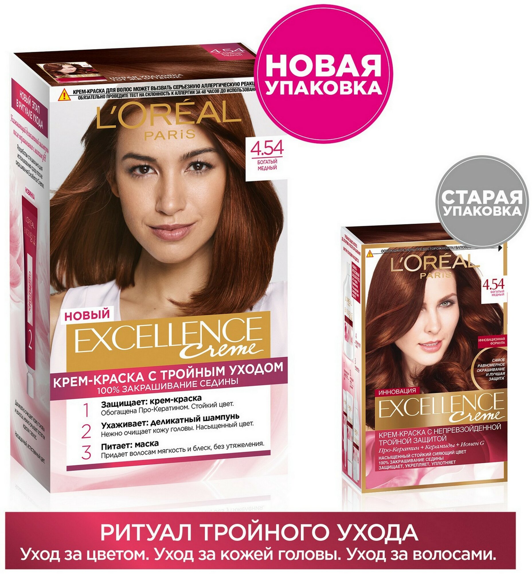 Купить L'Oreal Paris Excellence стойкая крем-краска для волос, 4.54 Богатый Медный - 1 шт