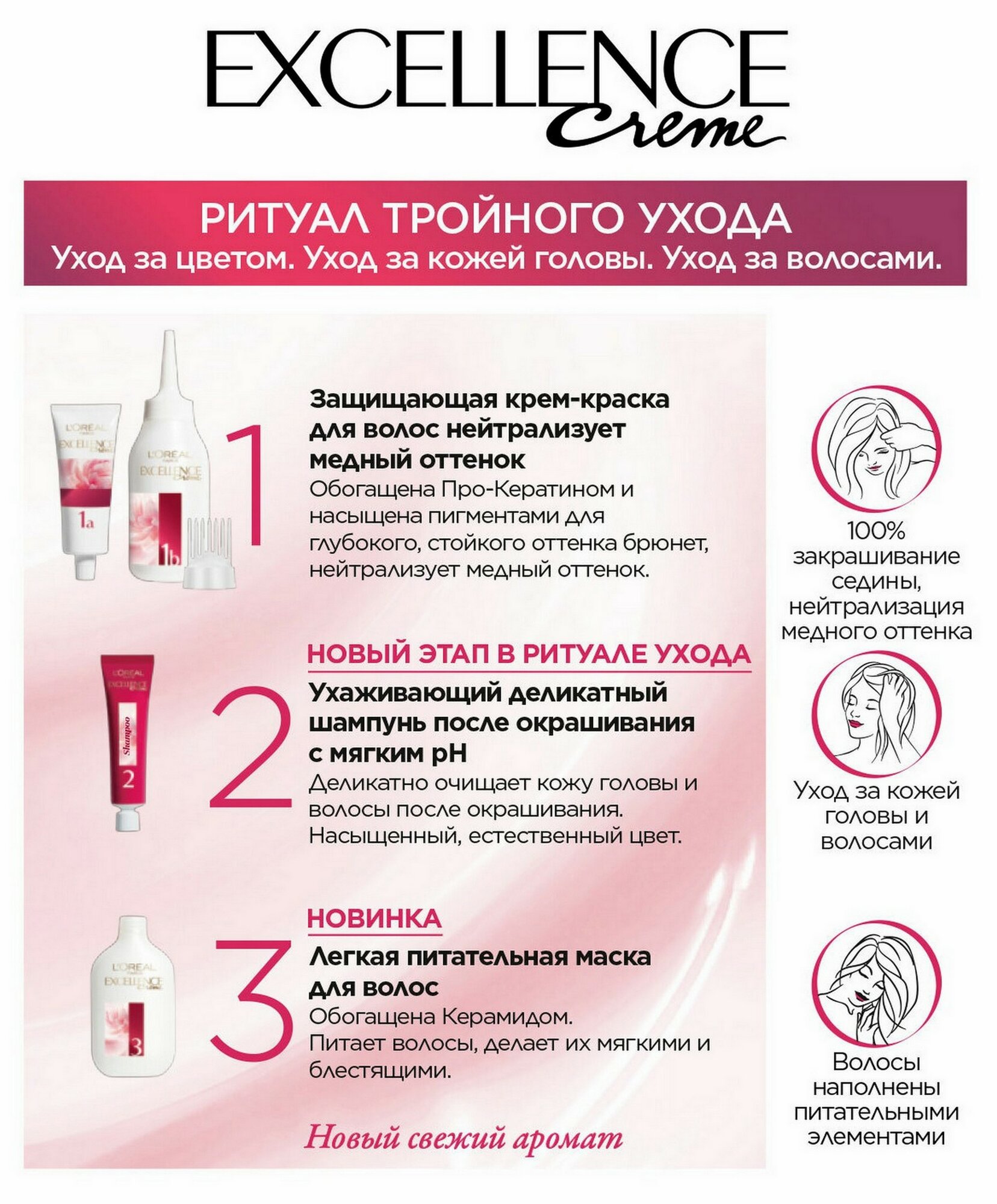 L'Oreal Paris Крем краска для волос стойкая Excellence Creme, 300, Темно-каштановый, 269мл
