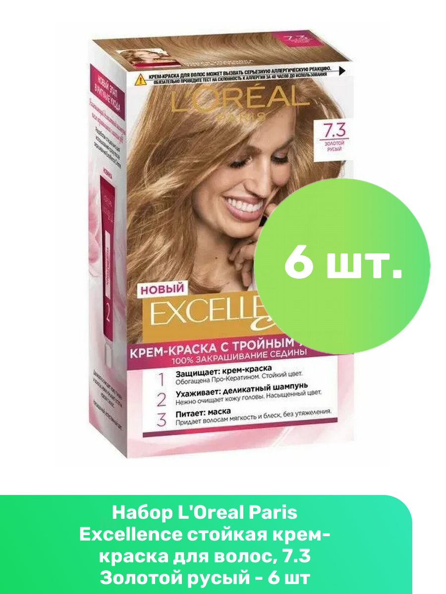 Купить L'Oreal Paris Excellence стойкая крем-краска для волос, 7.3 Золотой русый - 6 шт