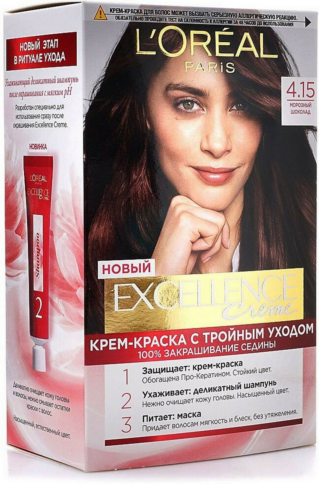 Купить L'Oreal Paris Excellence стойкая крем-краска для волос, 4.15 Морозный шоколад - 2 шт