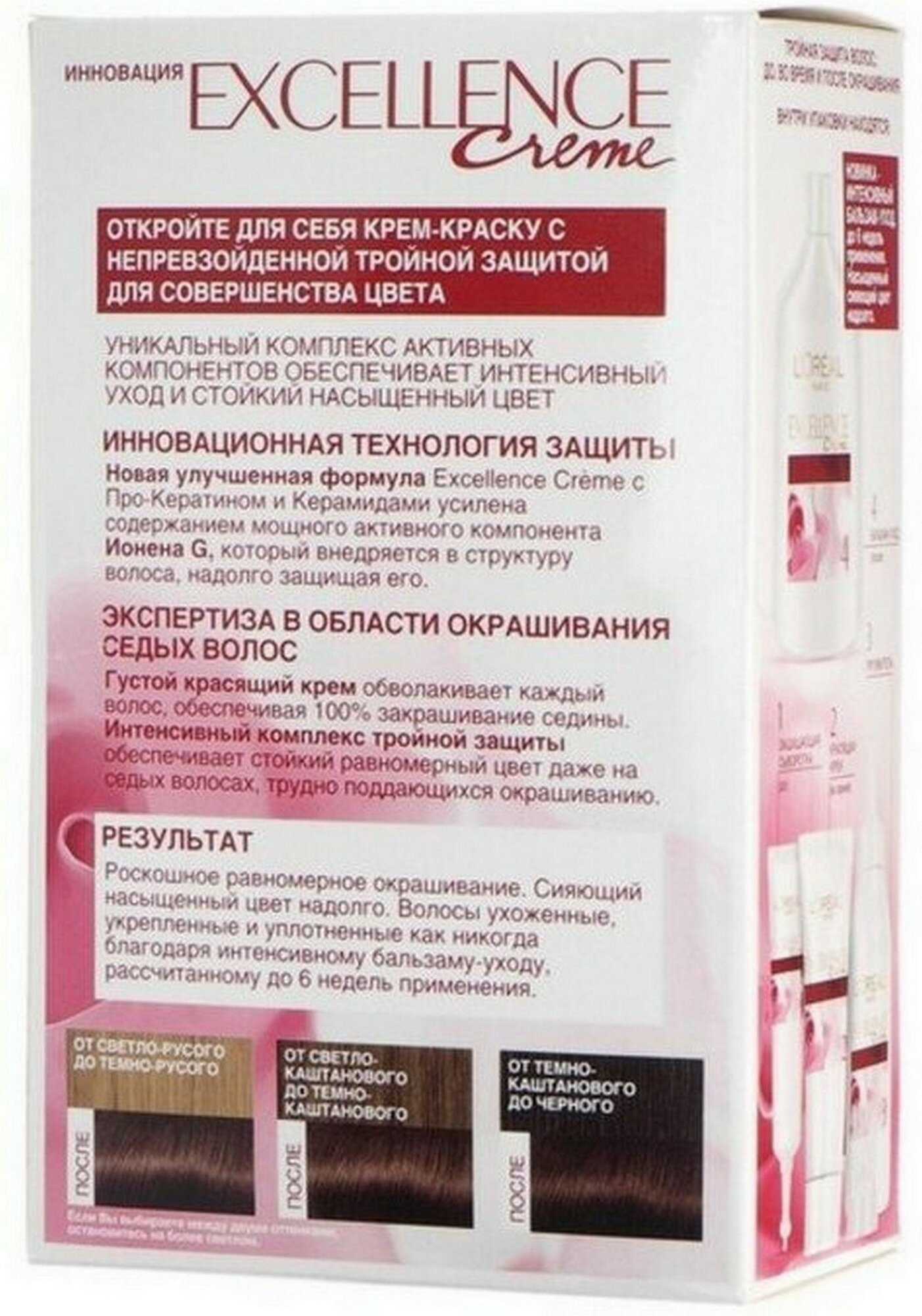 L'Oreal Paris Крем краска для волос стойкая Excellence Creme, 300, Темно-каштановый, 269мл