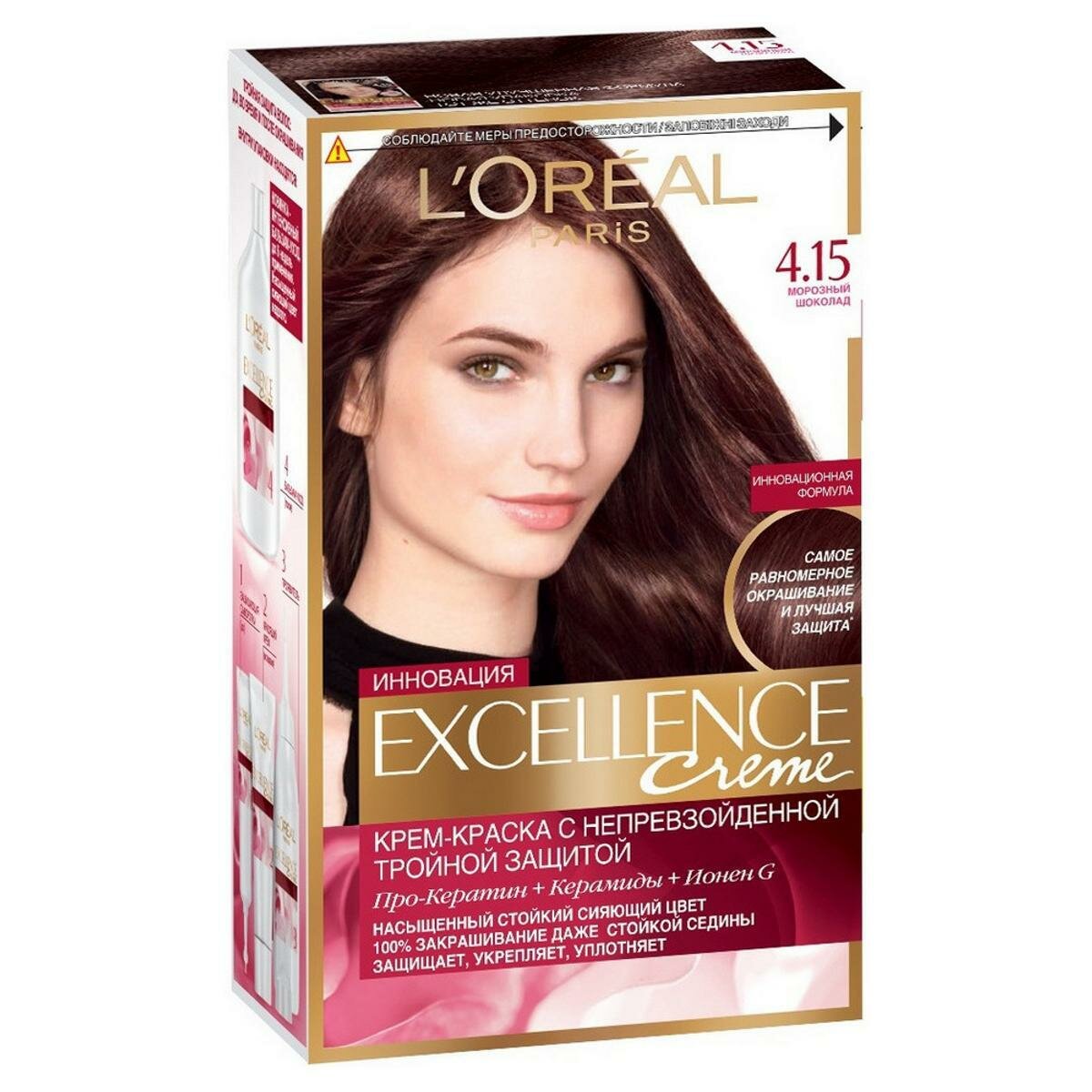 L'Oreal Paris Excellence стойкая крем-краска для волос, 4.15 Морозный шоколад - 1 шт