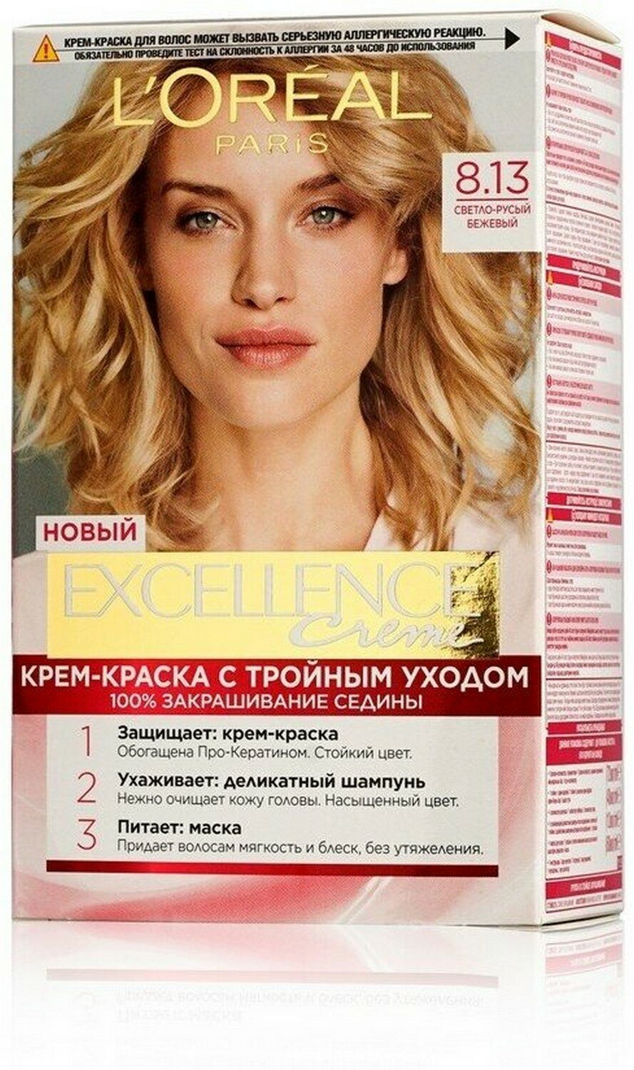Купить L'Oreal Paris Excellence стойкая крем-краска для волос, 8.13 Светло-русый бежевый - 1 шт