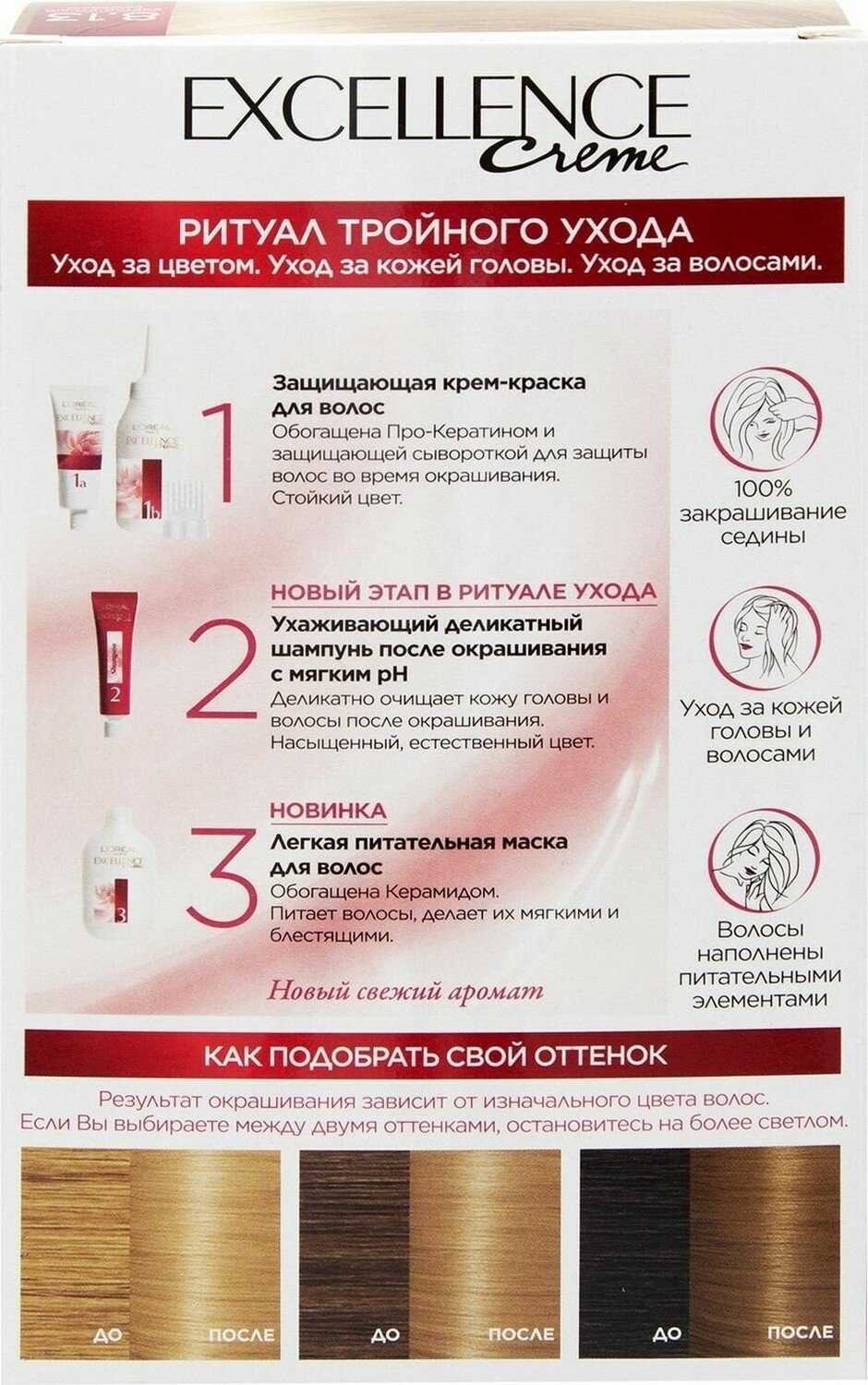 L'Oreal Paris Крем краска для волос стойкая Excellence Creme, 300, Темно-каштановый, 269мл