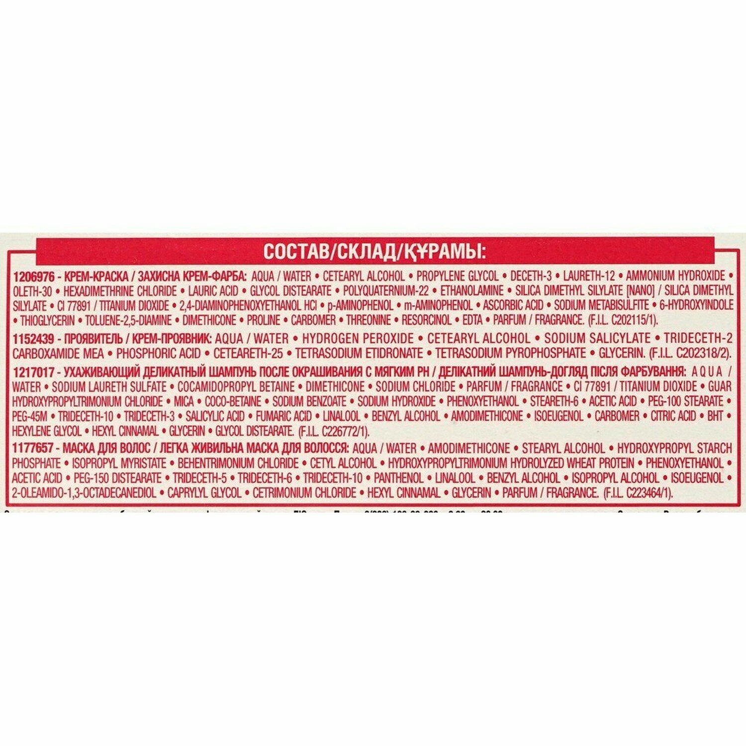 | Дополнительная информация | защищающая сыворотка - 12 мл, флакон-аппликатор с проявителем - 72 мл, тюбик с красящим кремом - 48 мл, флакон с бальзамом-уходом - 60 мл |