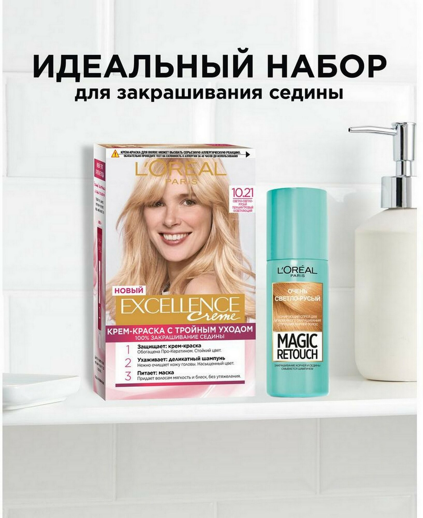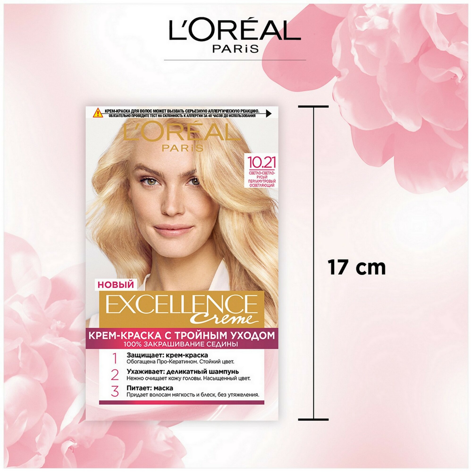 L'Oreal Paris Крем-краска стойкая для волос Excellence Creme, тон 10.21 Светло-русый перламутровый осветляющий, 192 мл