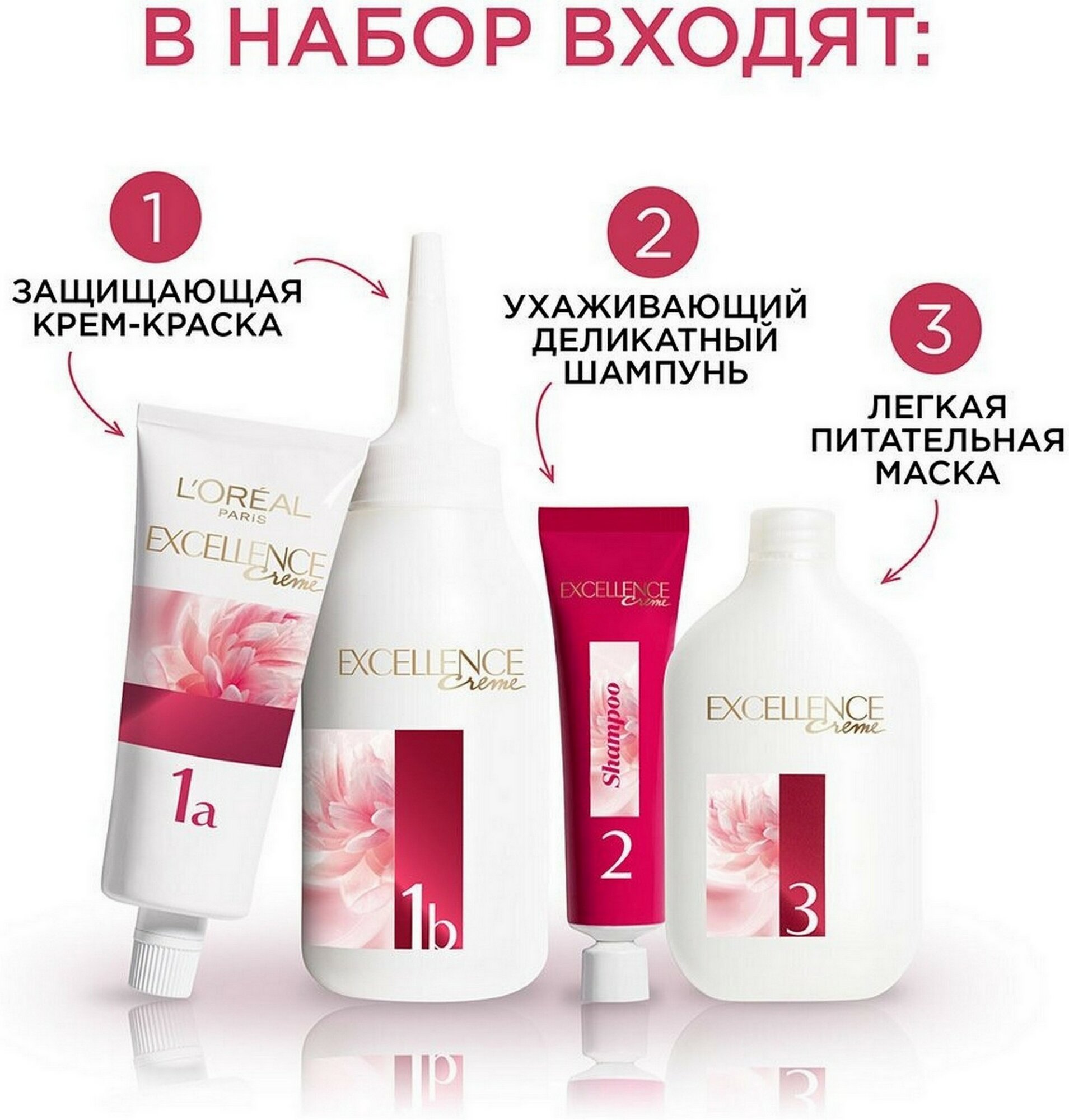 L'Oreal Paris Excellence стойкая крем-краска для волос, 1.00 Черный - 1 шт