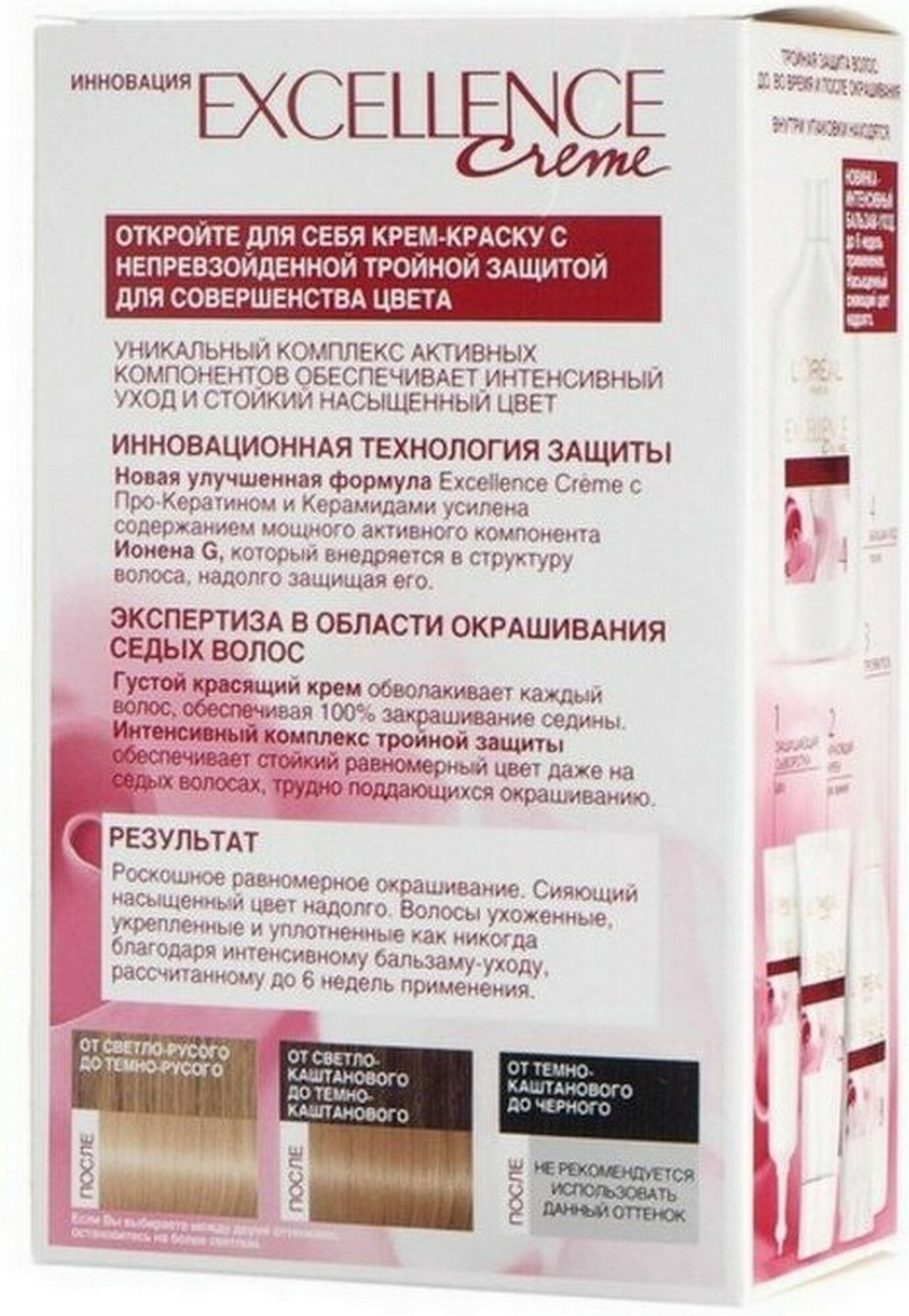 L'Oreal Paris Крем краска для волос стойкая Excellence Creme, 300, Темно-каштановый, 269мл