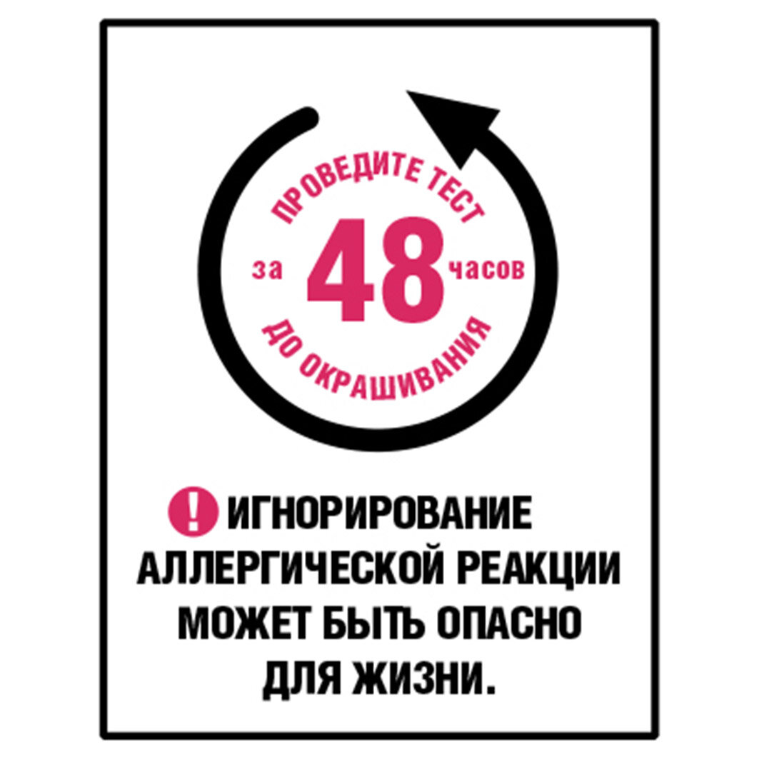 | Способ применения | перед началом окрашивания необходимо снять украшения и нанести крем по контуру лица, чтобы защитить кожу от попадания краски. Перед применением следует пройти тест на аллергическую реакцию. Внимательно прочтите инструкцию, следуйте ее рекомендациям |