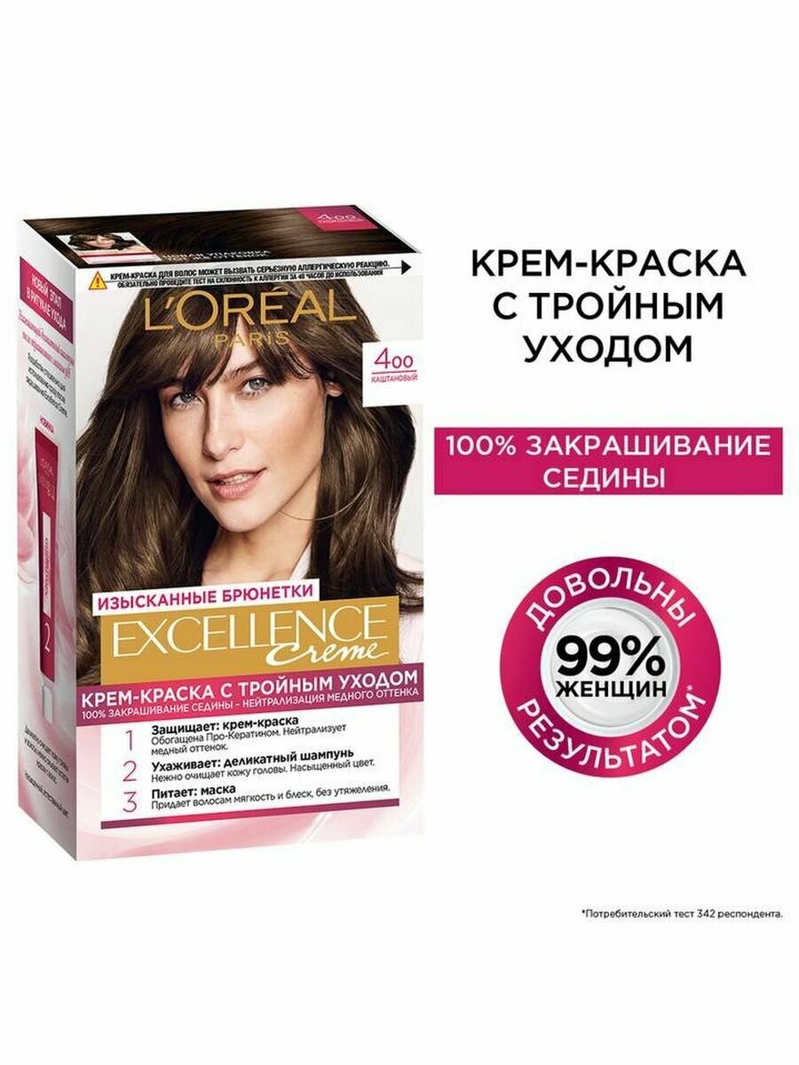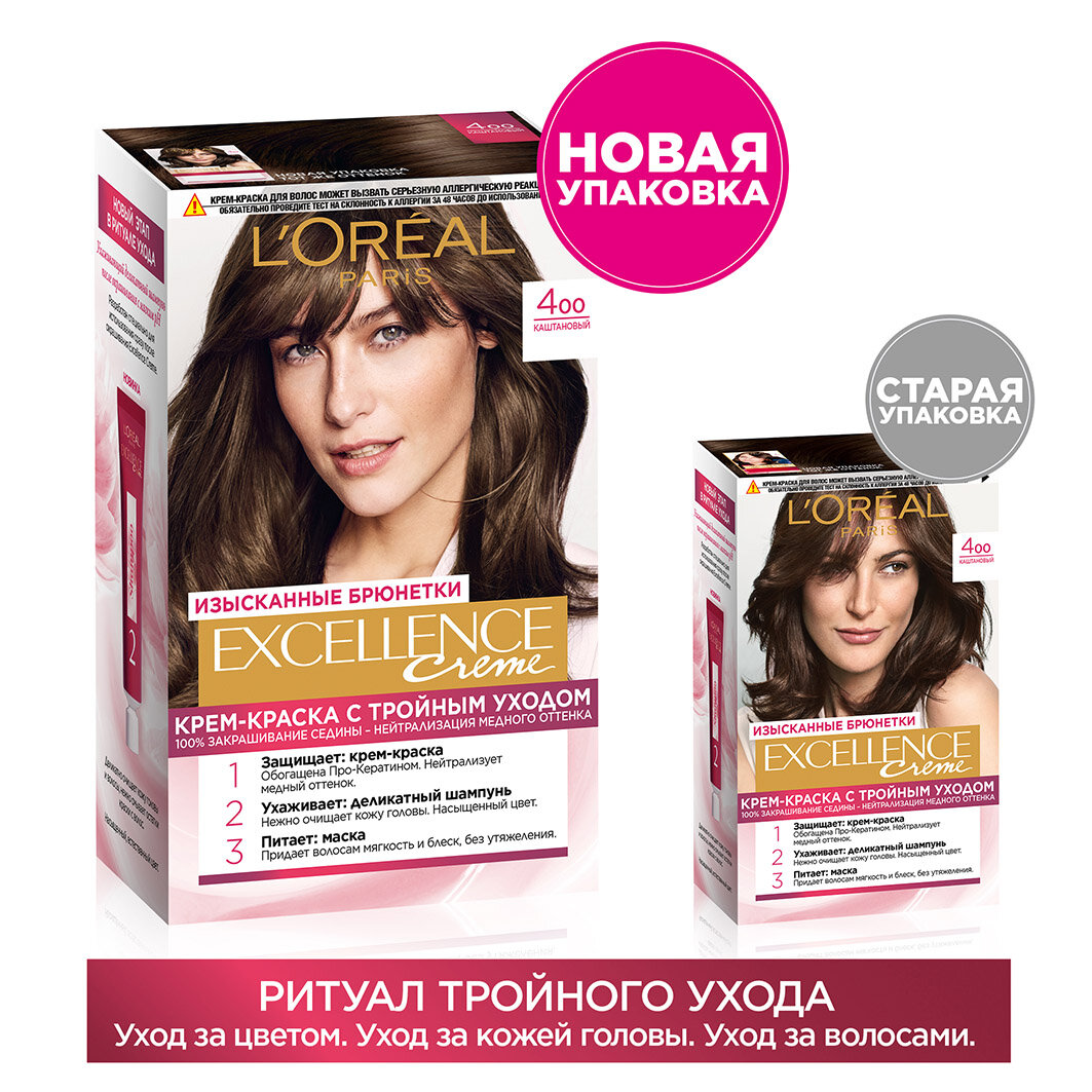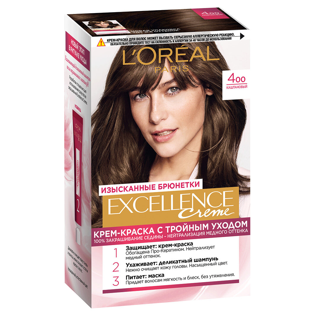 L'Oreal Paris Краска для волос Excellence-Crème, тон №400, Каштановый, 48 мл, н/д