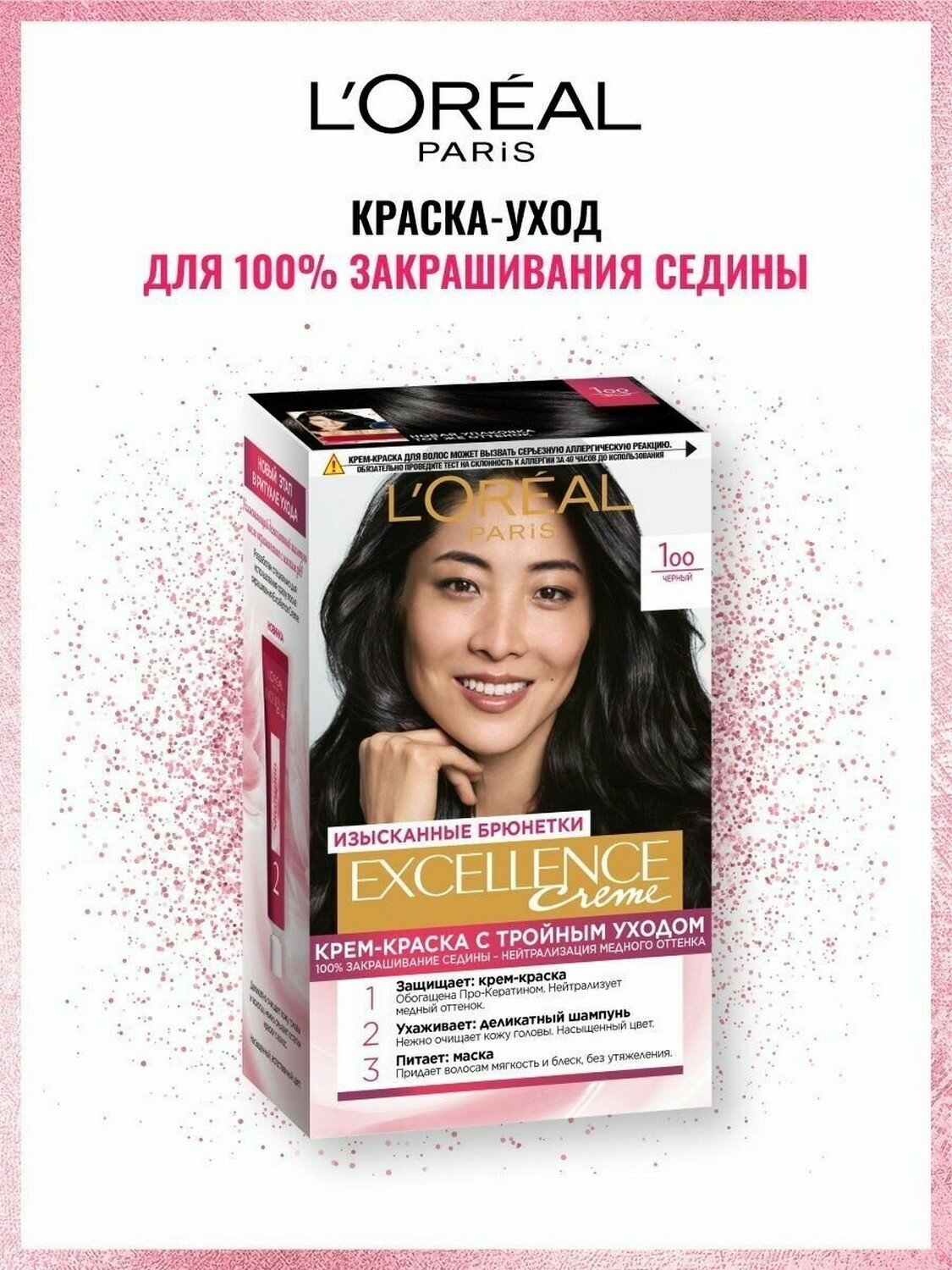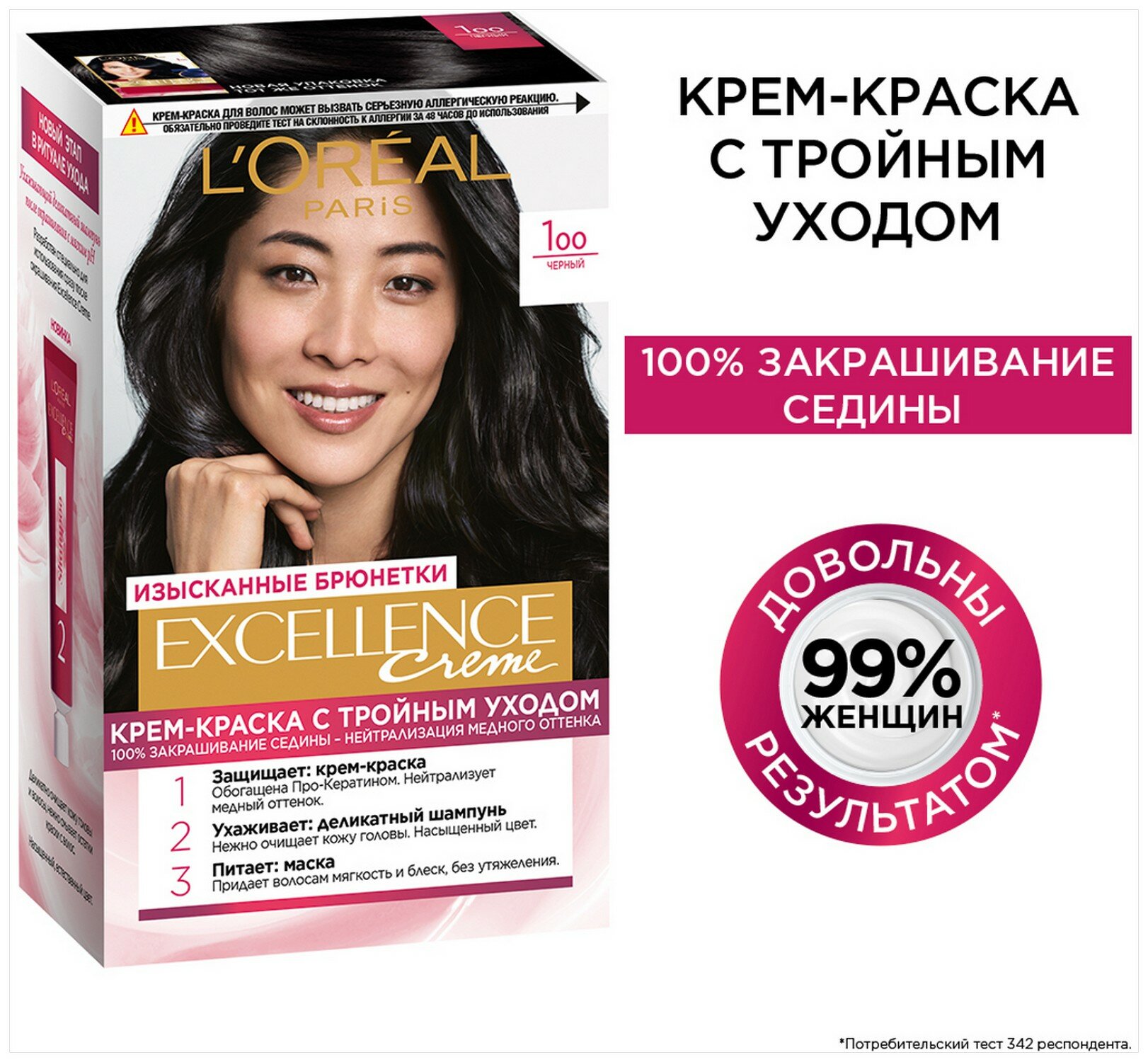 Купить L'Oreal Paris Excellence стойкая крем-краска для волос, 1.00 Черный - 3 шт