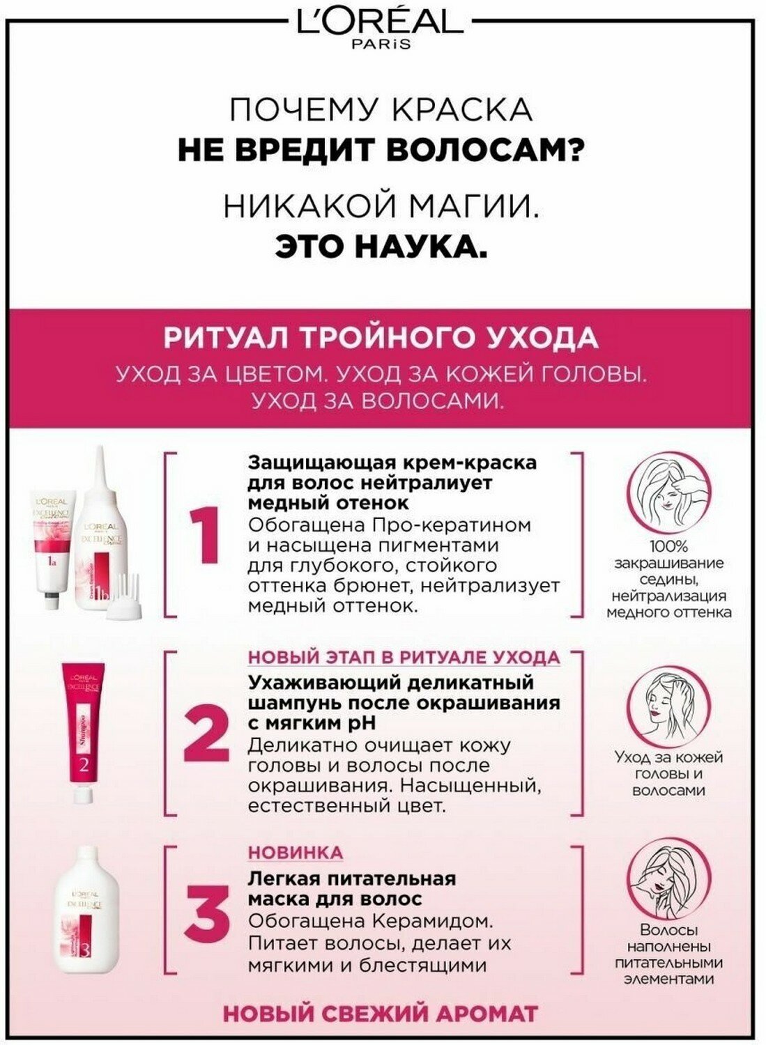 L'Oreal Paris Excellence стойкая крем-краска для волос, 4.02 Пленительный каштан - 3 шт