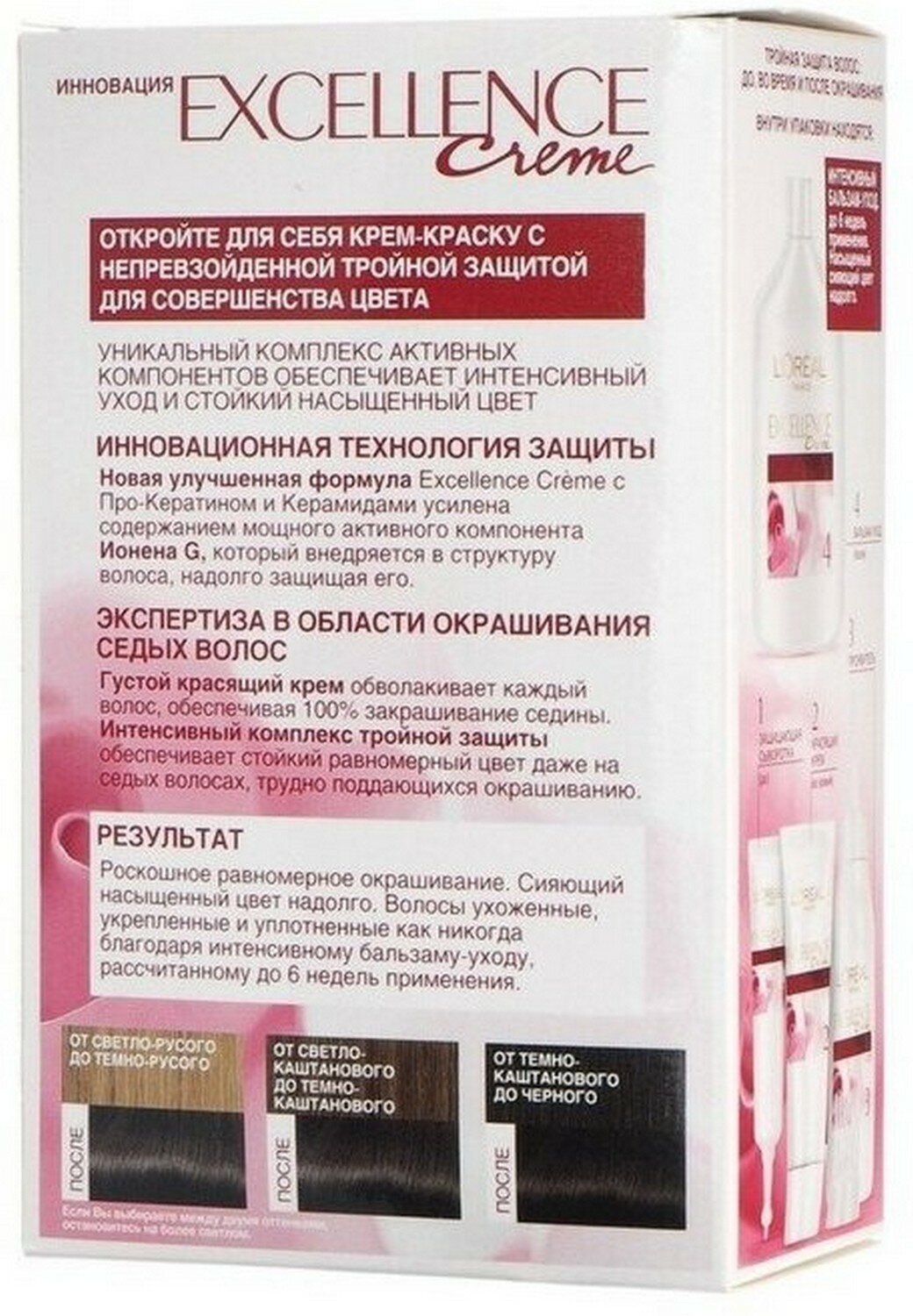 L'Oreal Paris Крем краска для волос стойкая Excellence Creme, 300, Темно-каштановый, 269мл