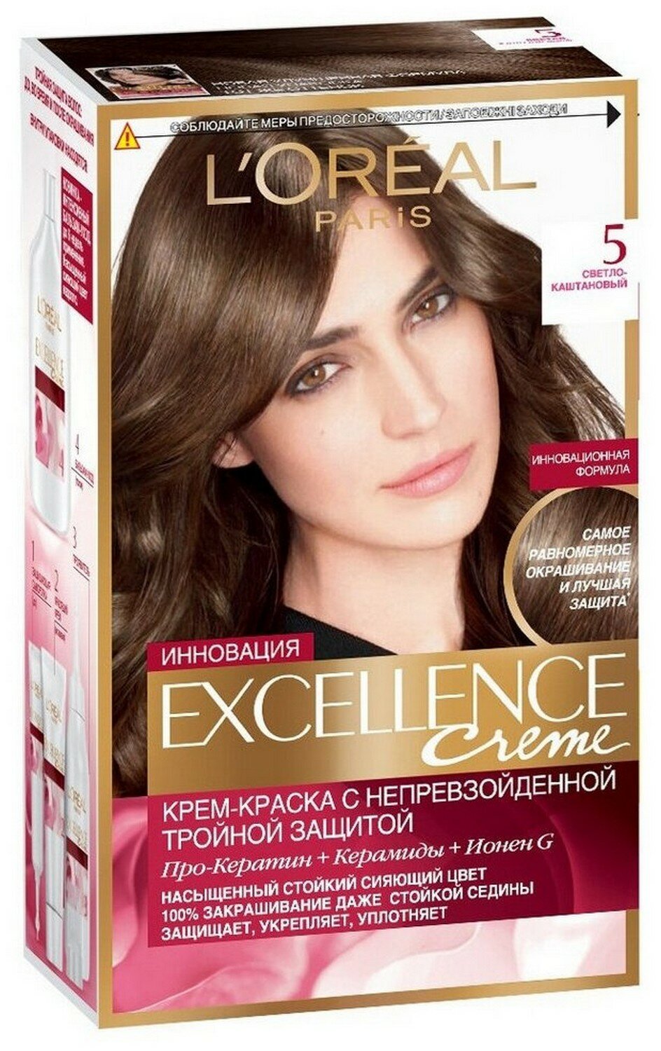 СохранитьL'Oreal Paris Excellence стойкая крем-краска для волос, 5.00 светло-каштановый - 1 шт интересное:
